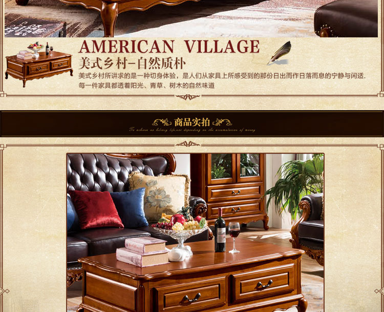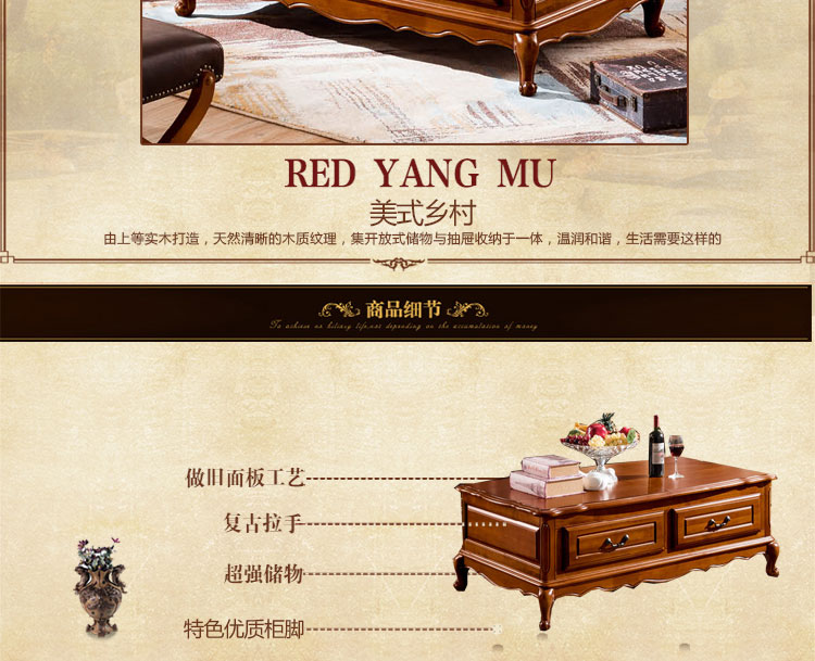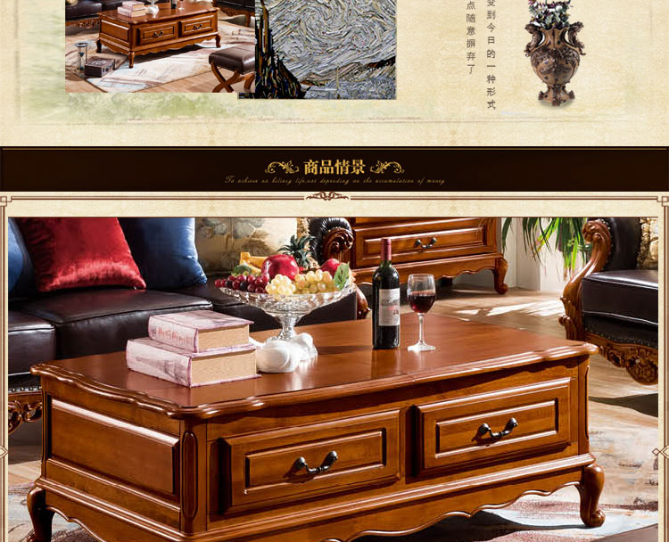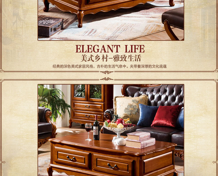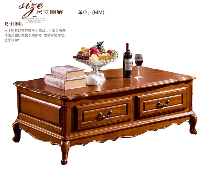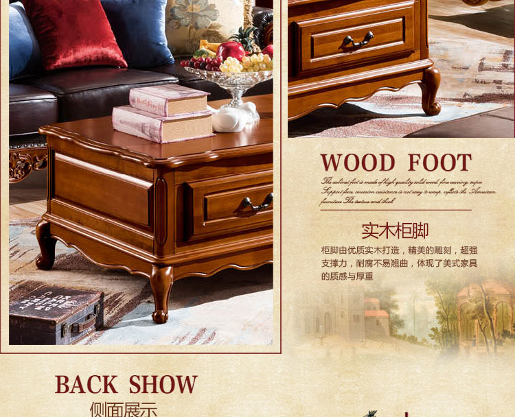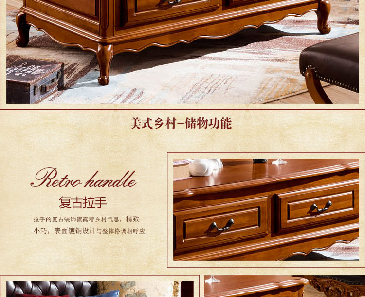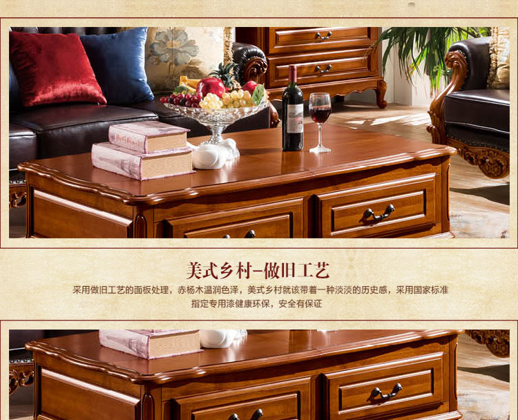 雅庭罗兰 实木茶几美式茶几电视柜组合小户型简约茶几美式茶桌 68912