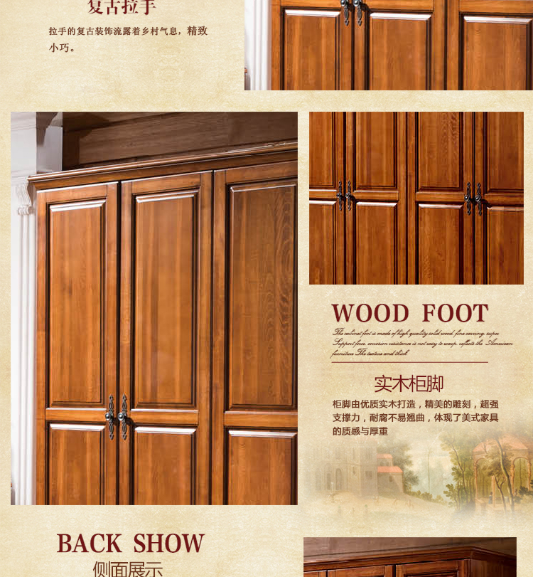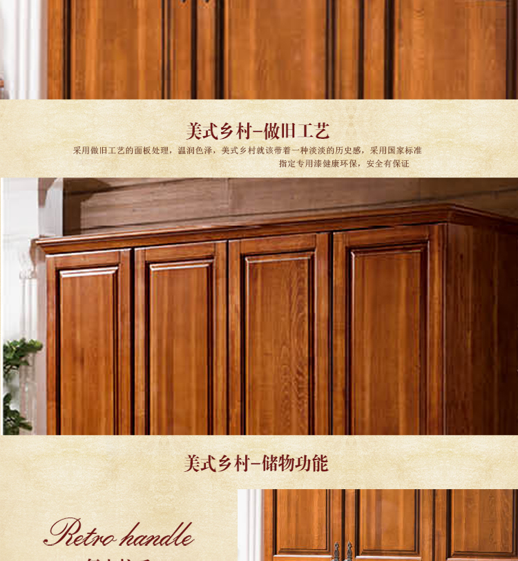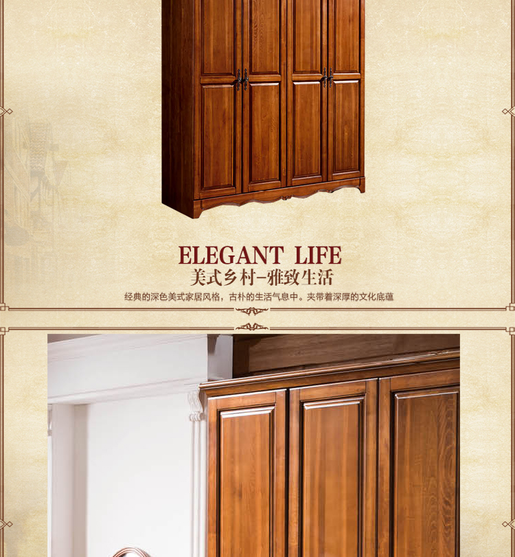 雅庭罗兰 美式乡村四门衣柜 美式高档卧室四门衣柜 宜家储藏柜 68107