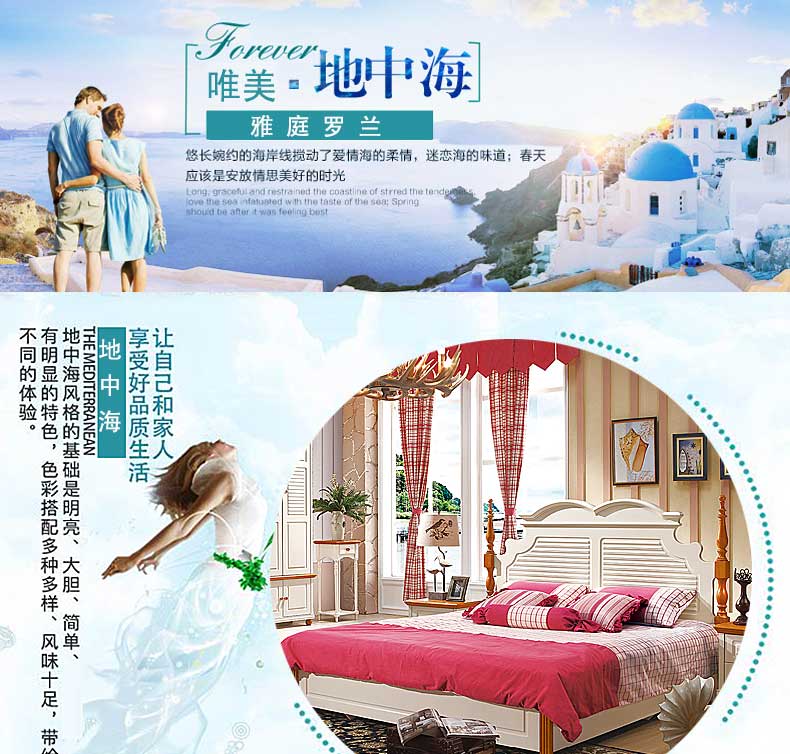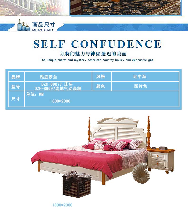 雅庭罗兰地中海床1.8米双人床公主床地中海风格床DZH-89077
