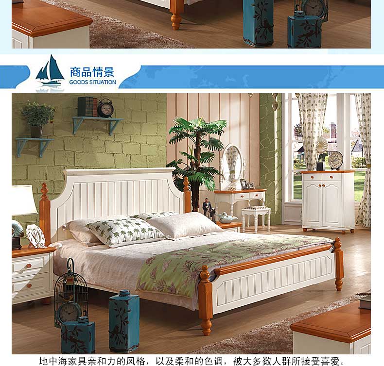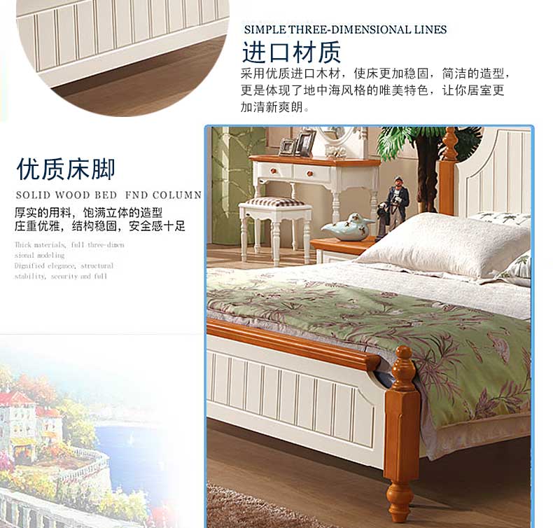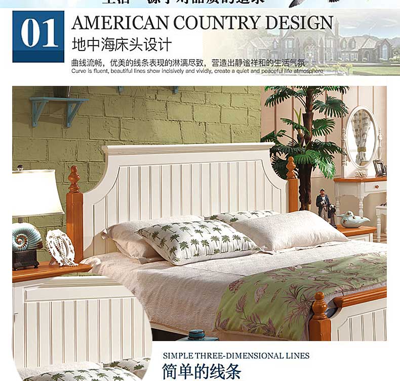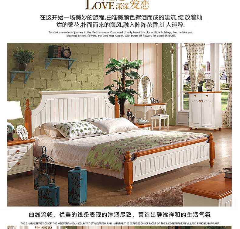雅庭罗兰美式乡村地中海床双人床韩式田园风格家具1.8大床DZH-89063