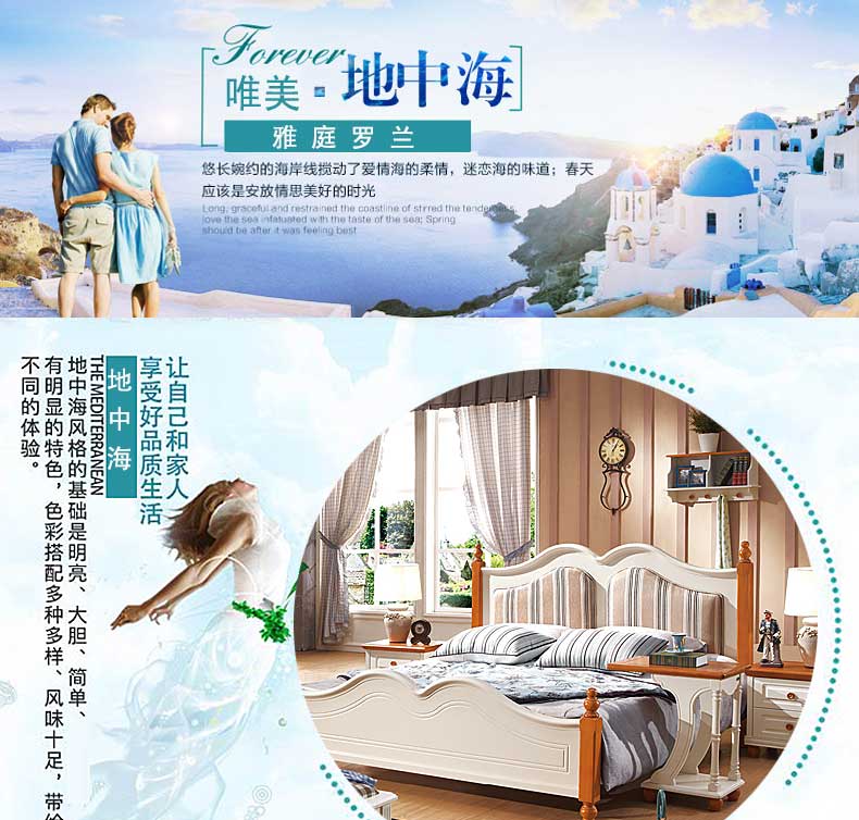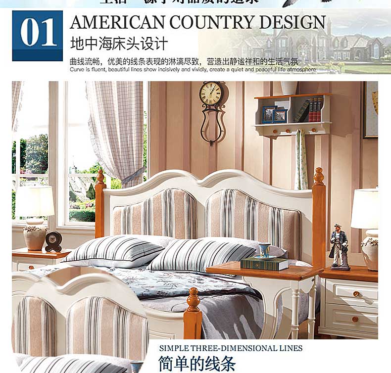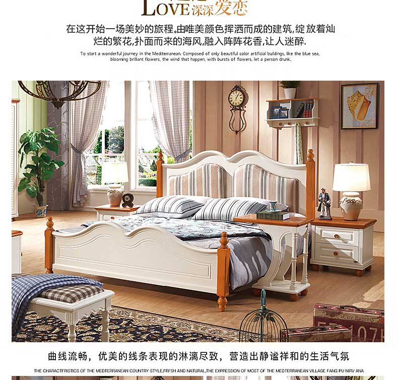 雅庭罗兰新款地中海床美式乡村风格床1.8米双人公主床田园床DZH-89066