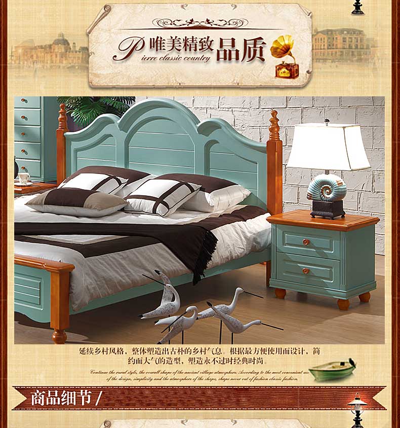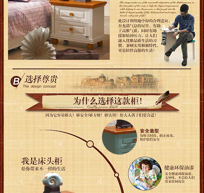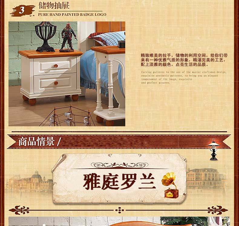 雅庭罗兰地中海床头柜台灯柜子置物柜田园床头柜小户型储物柜子DZH-89328床头柜