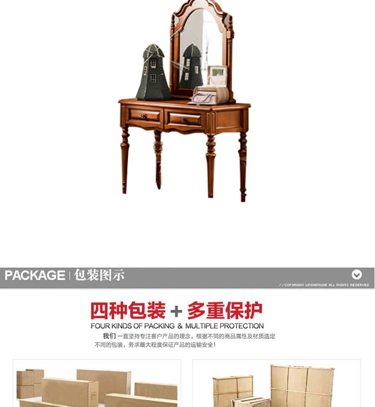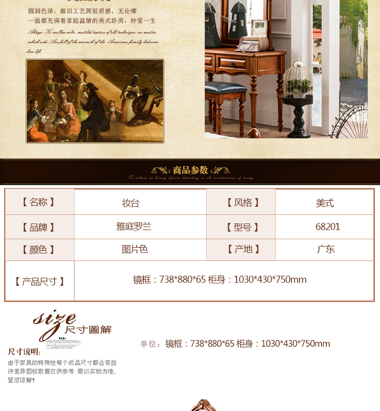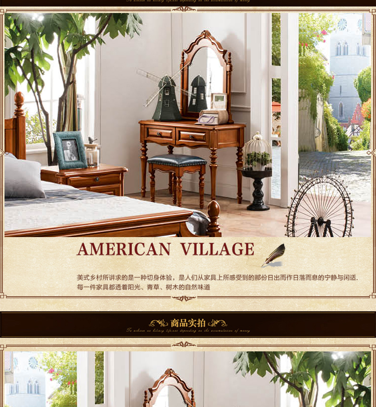 雅庭罗兰 复古小户型实木美式梳妆台古典美式化妆桌木制 68201