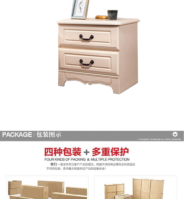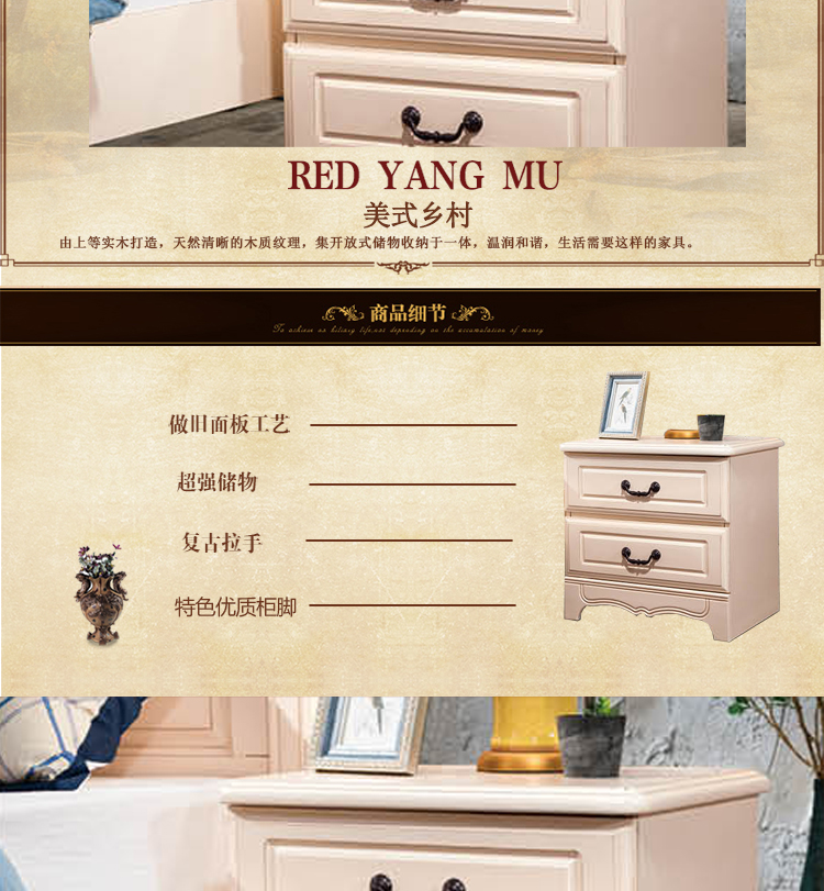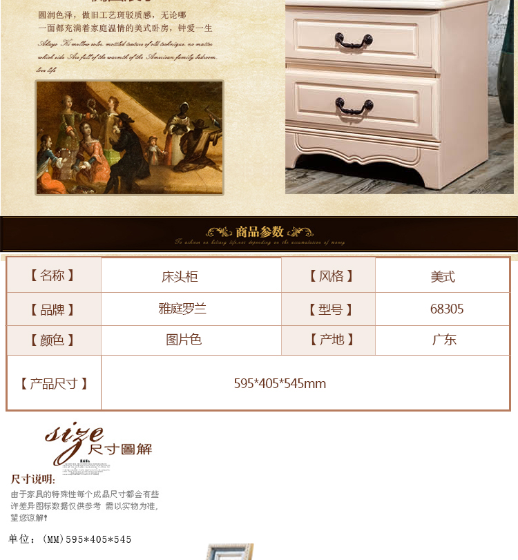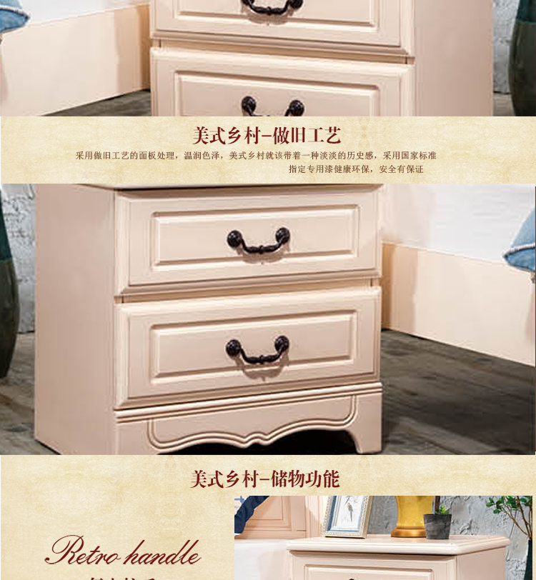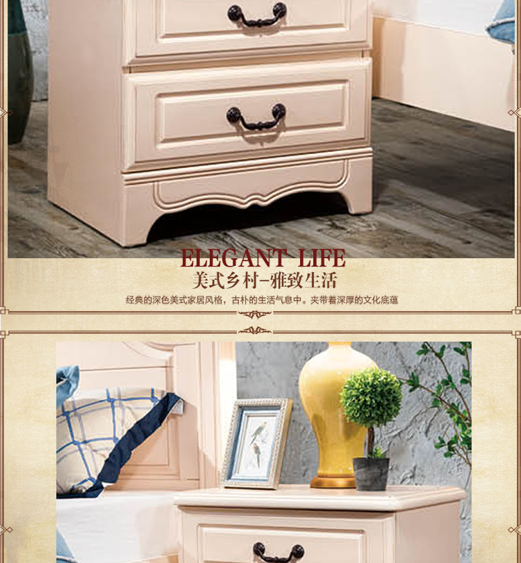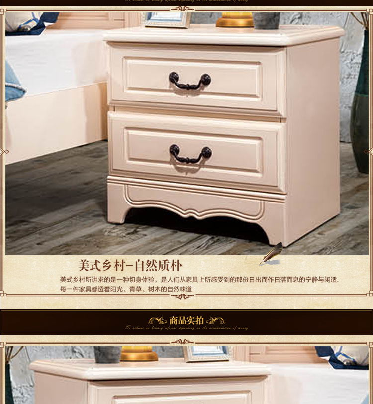 雅庭罗兰 美式床头柜白色实木床头柜白色新款床头柜收纳柜 68305