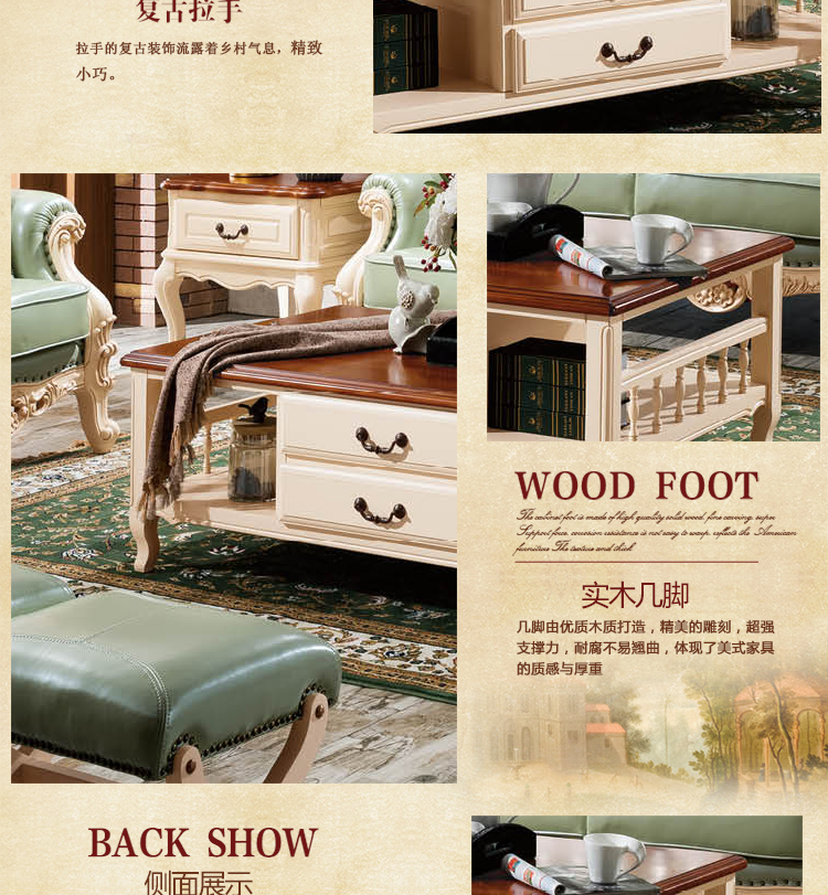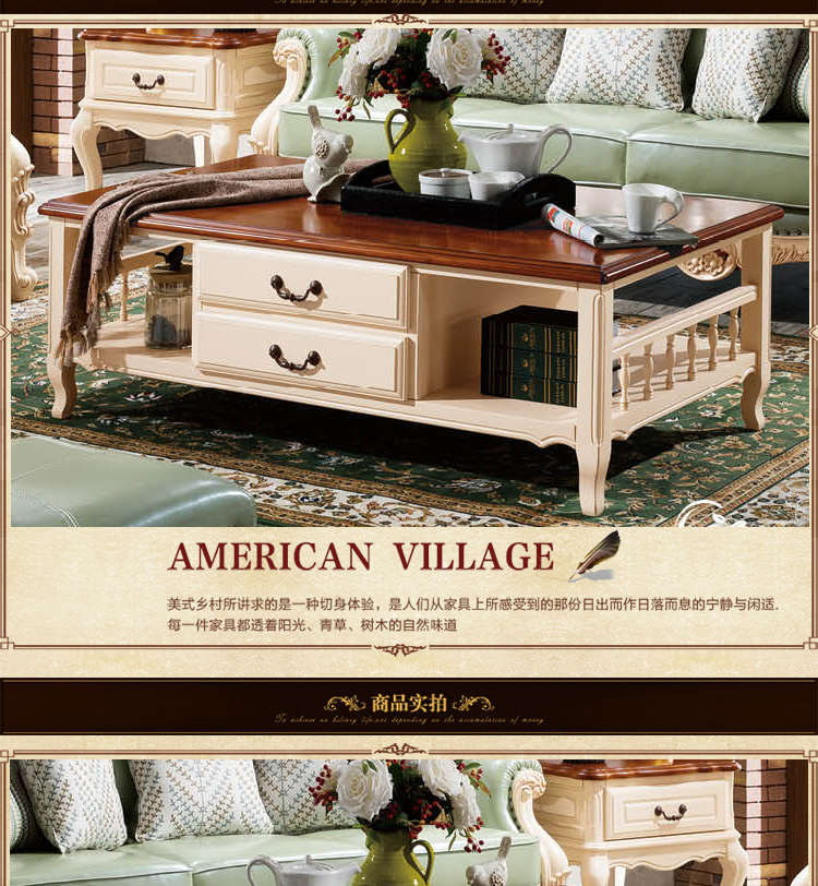 雅庭罗兰 美式实木白色茶几 美式乡村实木茶几 客厅茶几68912
