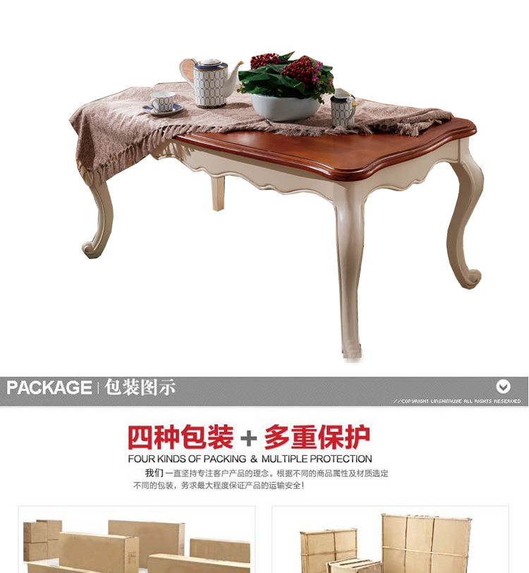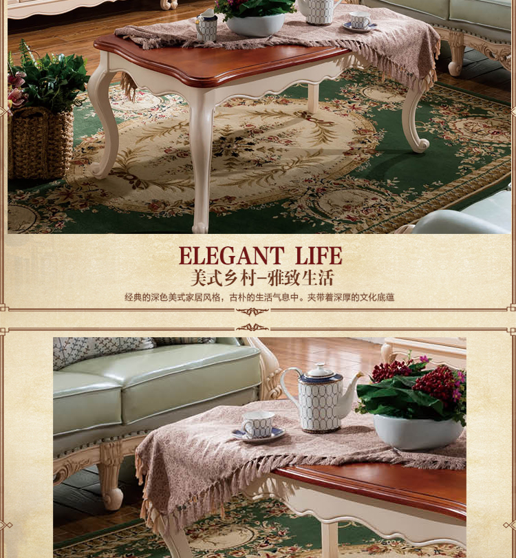 雅庭罗兰 美式乡村实木茶几 美式实木白色茶几 客厅茶几 68917