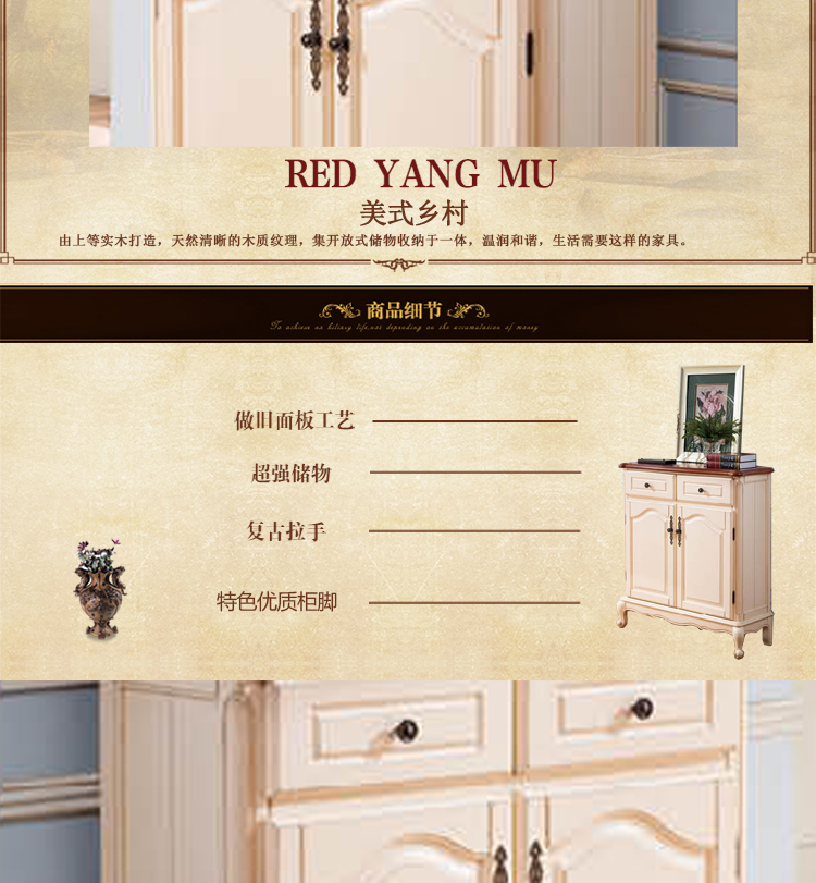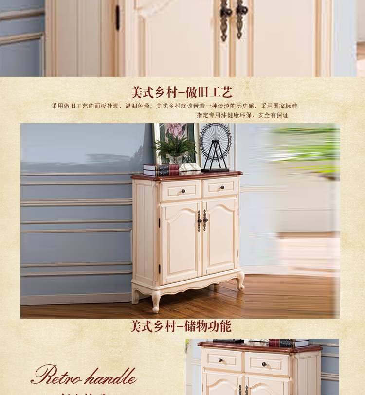 雅庭罗兰 美式乡村白色鞋柜 高档卧室鞋柜 新款鞋柜 简约鞋柜 68531
