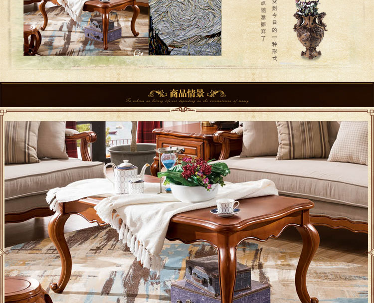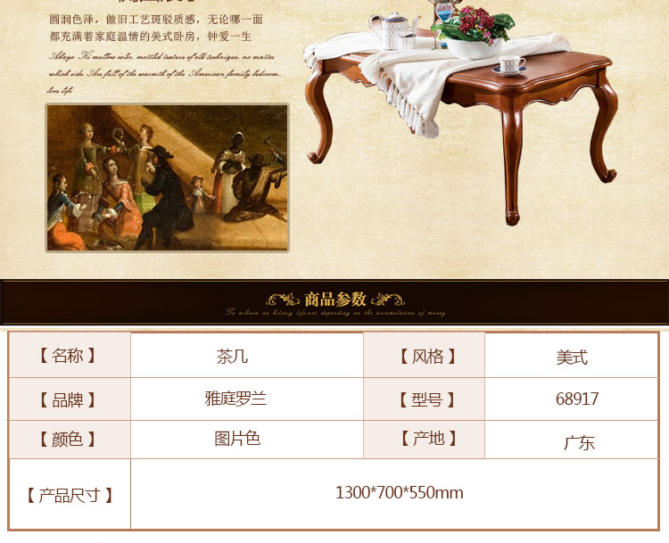 雅庭罗兰 美式茶几美式乡村茶几实木美式小户型家具茶几 68917