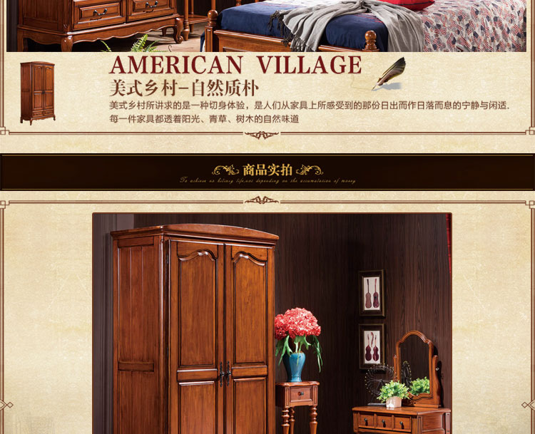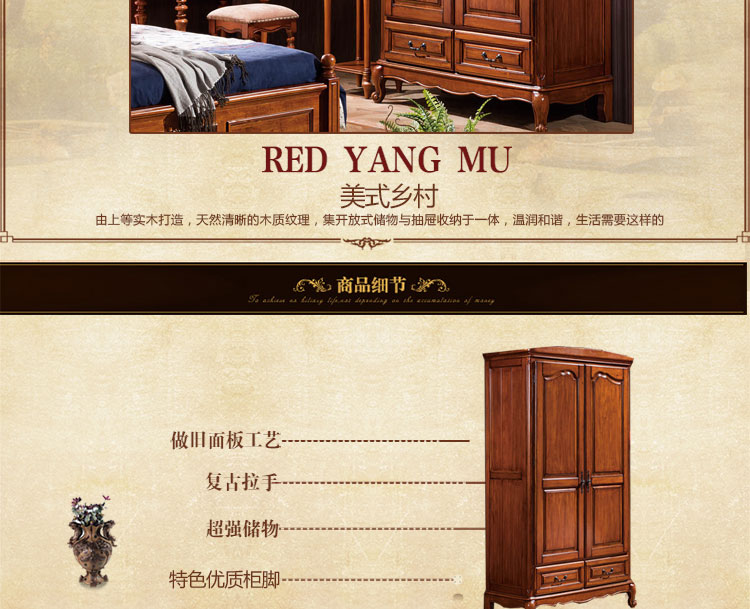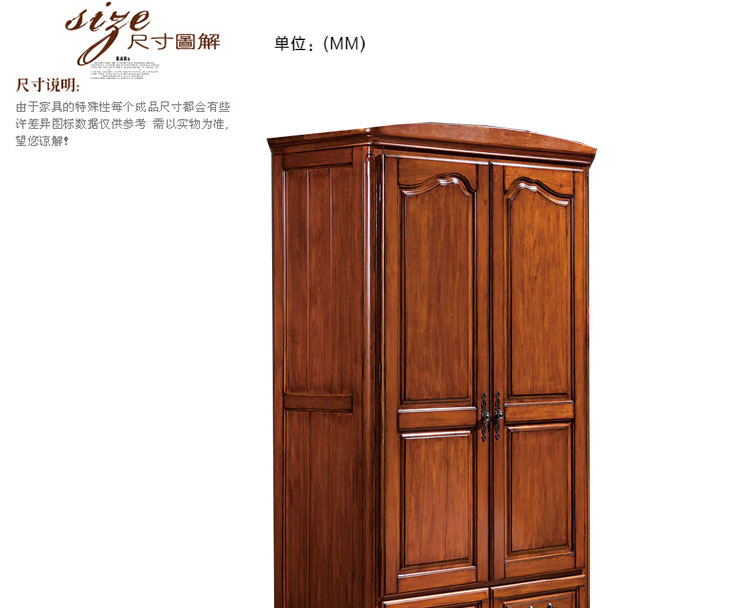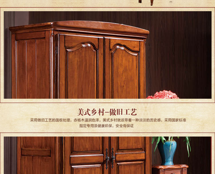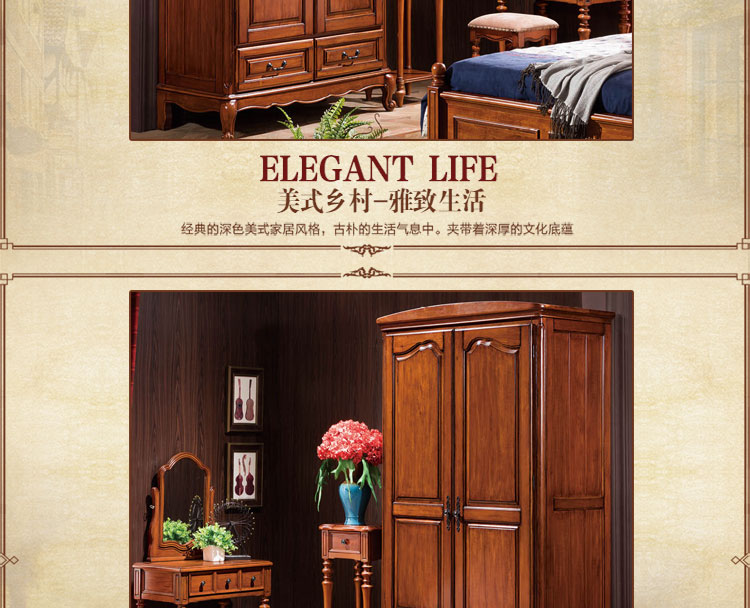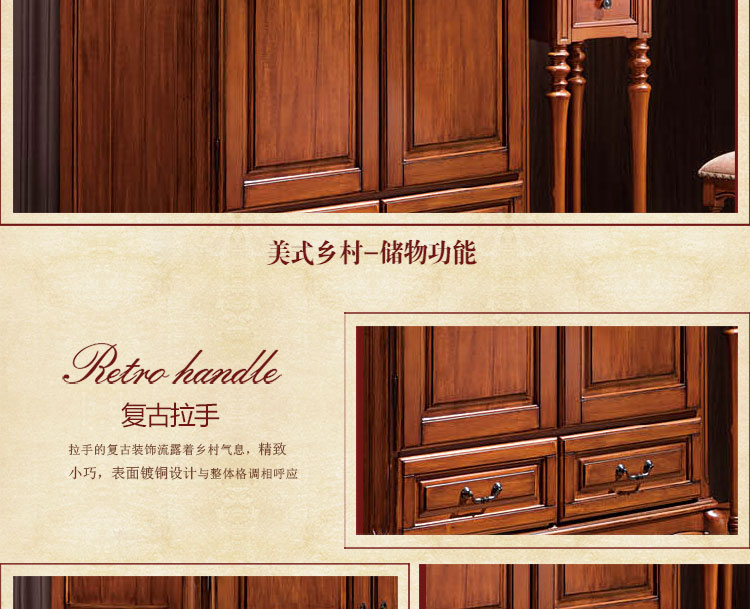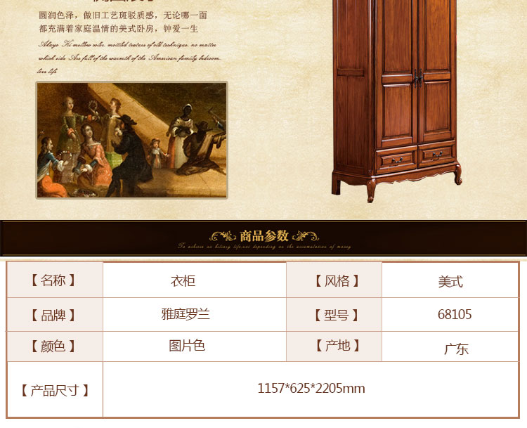 雅庭罗兰 美式实木衣柜卧室实木抽屉衣柜 新古典复古衣橱68105