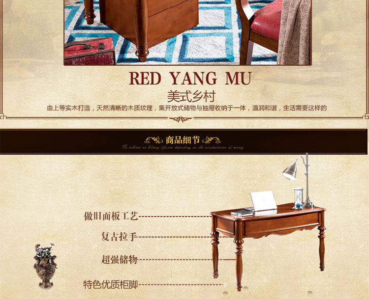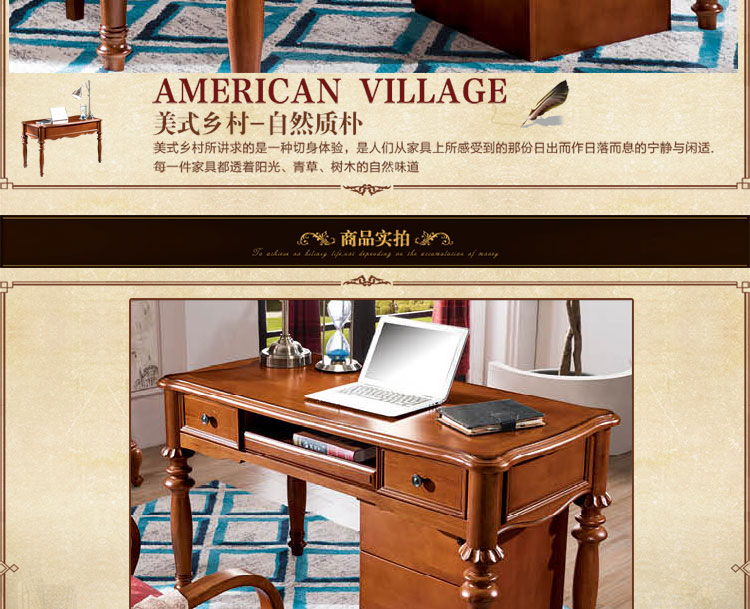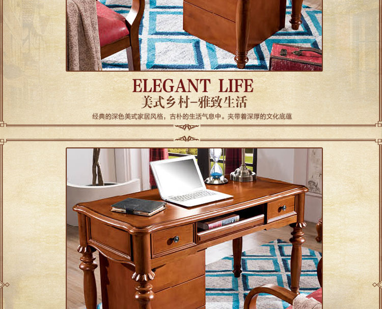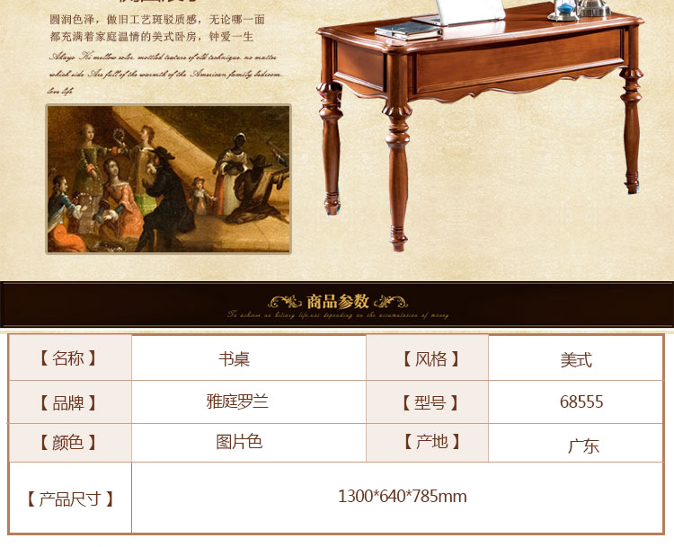 雅庭罗兰 全实木书桌电脑桌美式书桌家具 68555