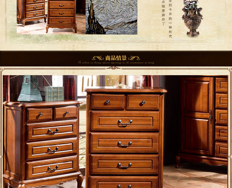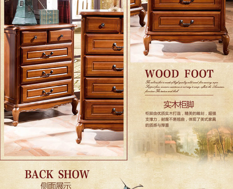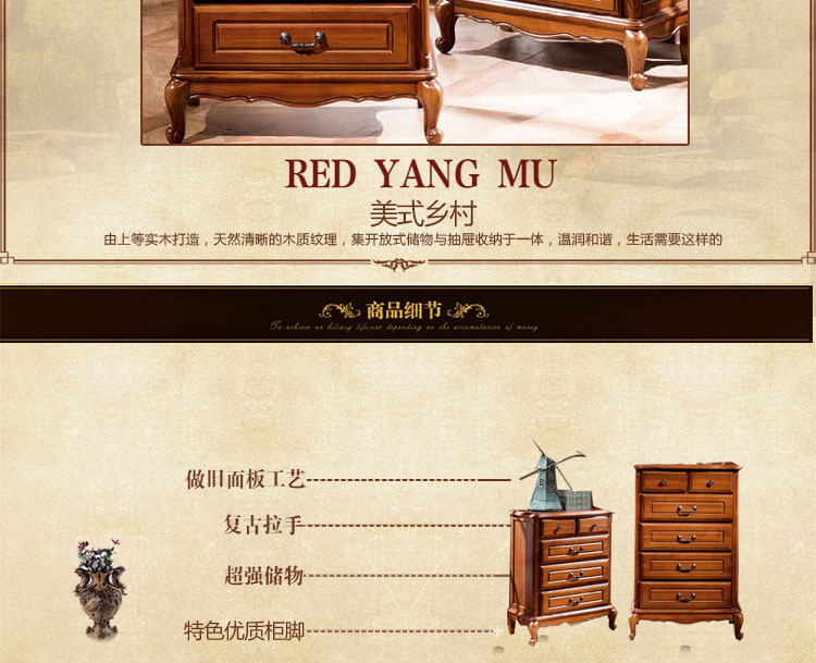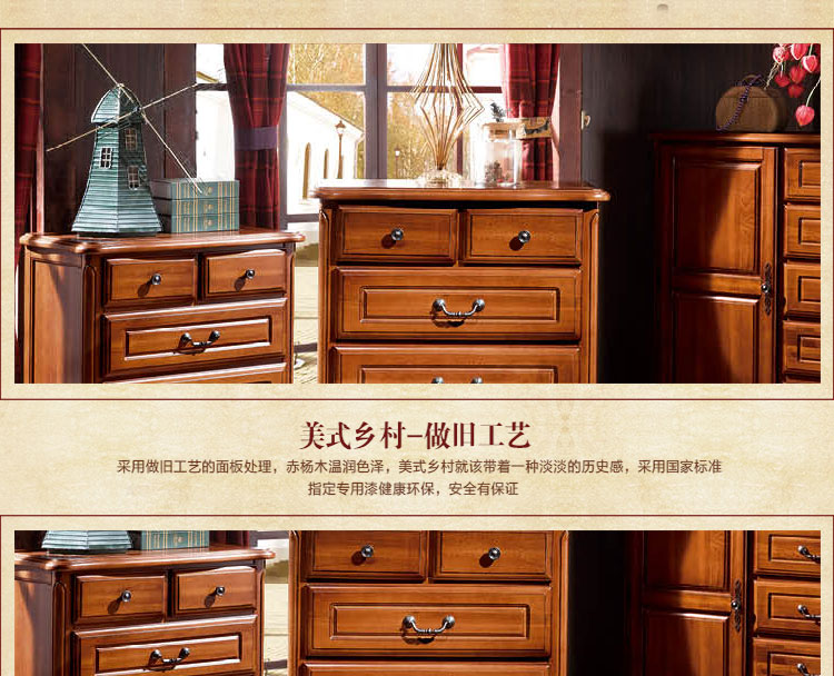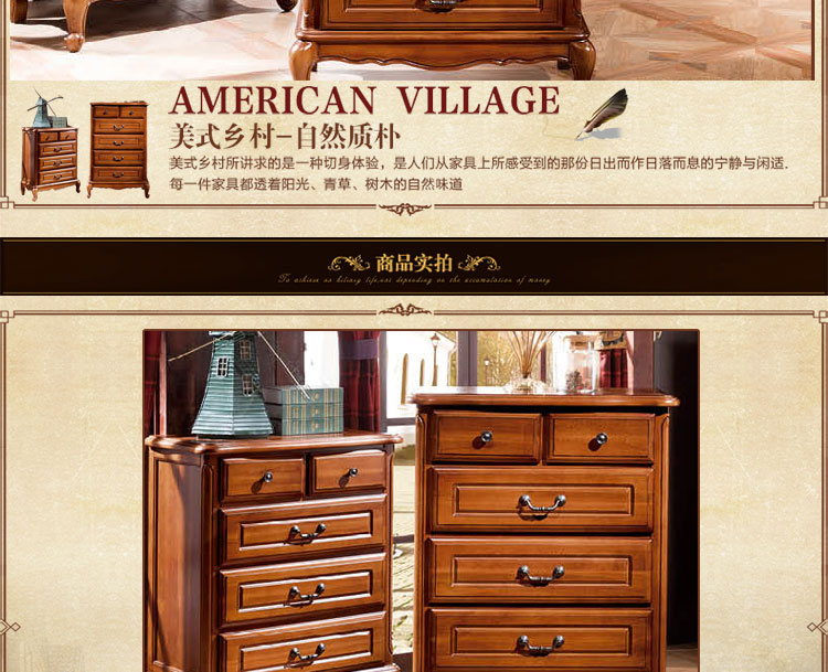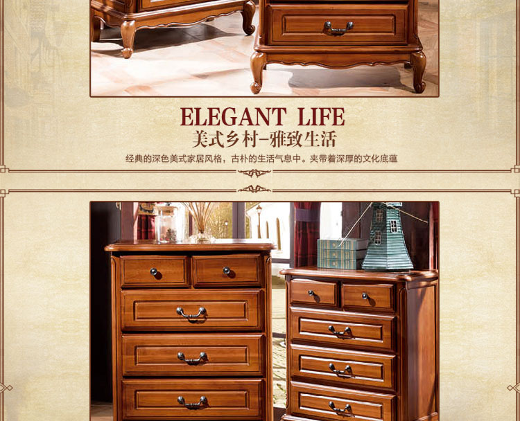 雅庭罗兰 美式四五斗柜简约现代实木卧室收纳储物抽屉式五斗橱整装68533