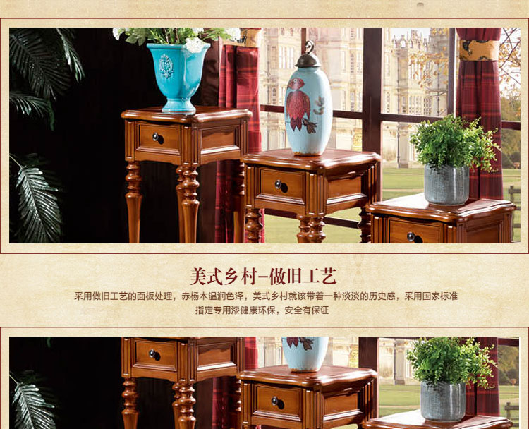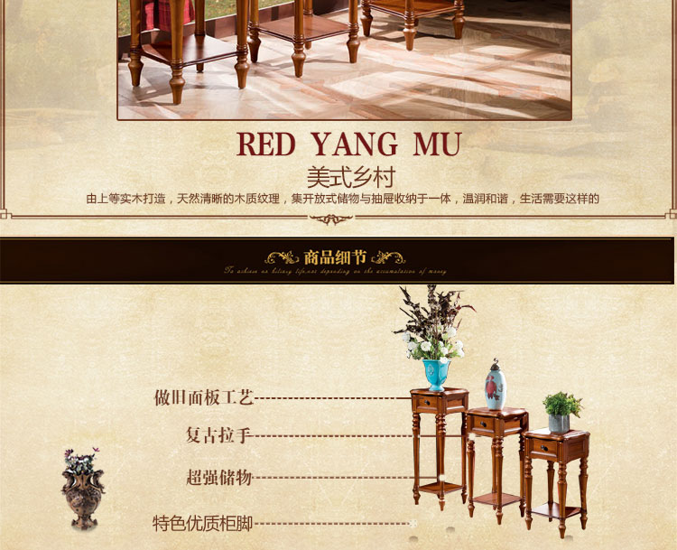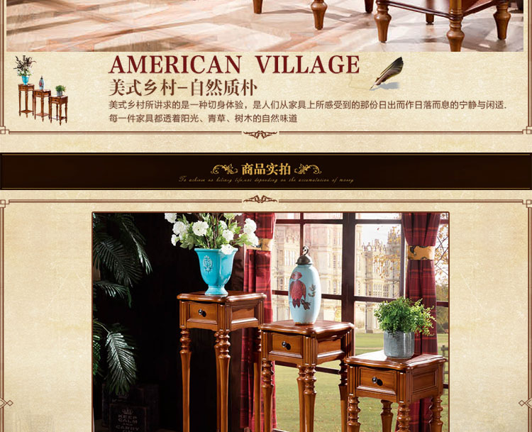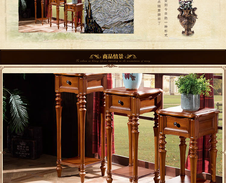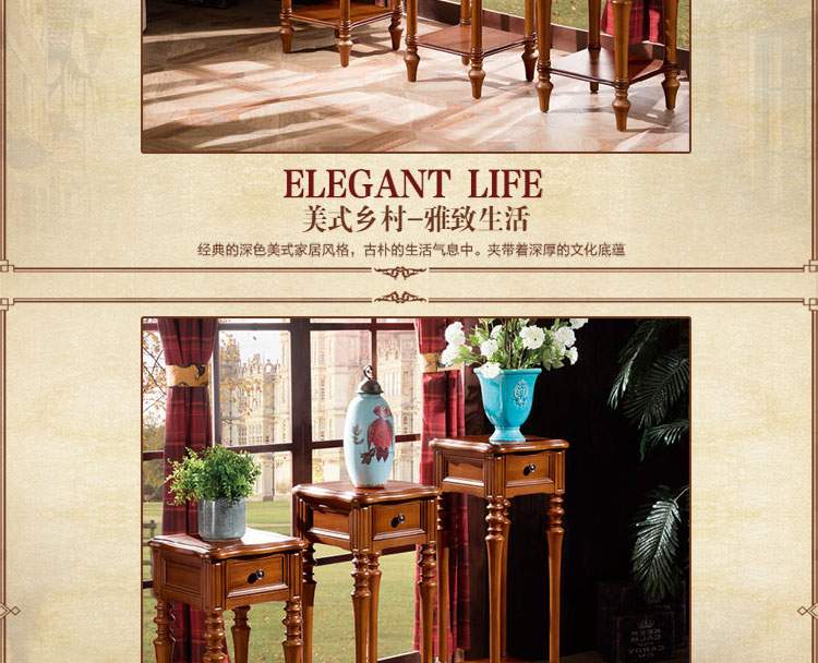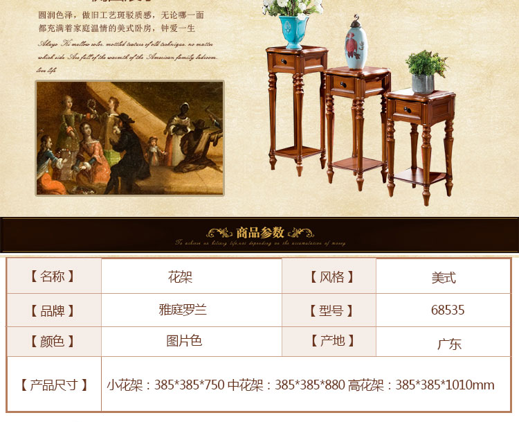 雅庭罗兰 美式实木花架 花几 室内落地木质花盆架多层阳台花架子 68535