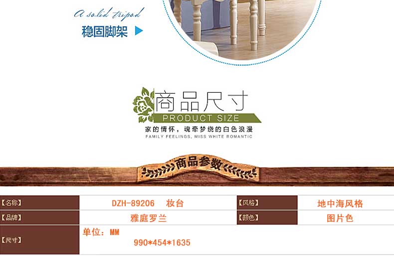 雅庭罗兰地中海梳妆台大小户型美式乡村化妆桌卧室家具DZH-89206妆台