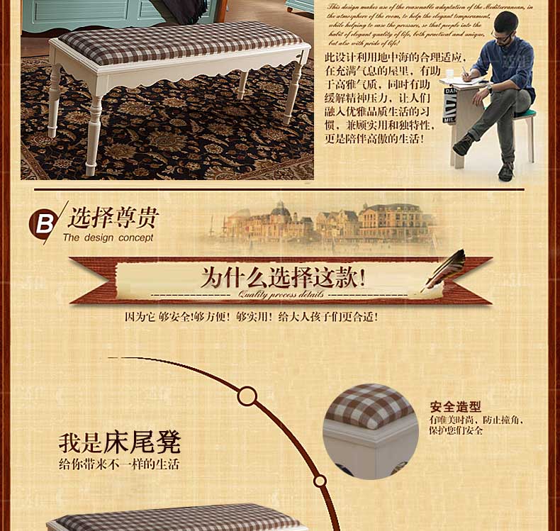 雅庭罗兰新款换鞋凳布艺卧室床尾凳鞋店试鞋凳DZH-89682床尾凳