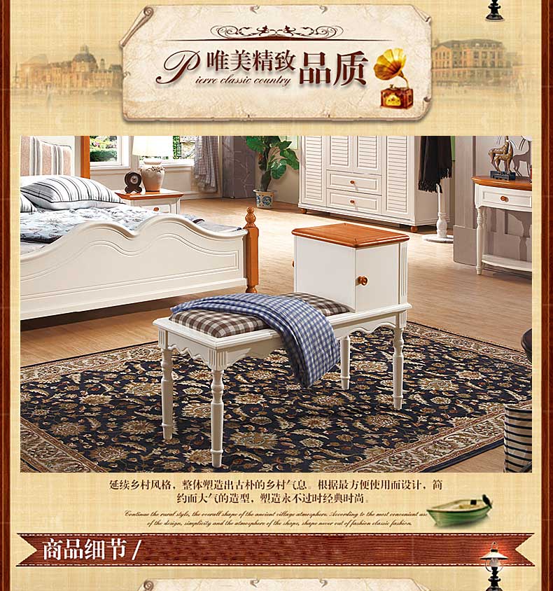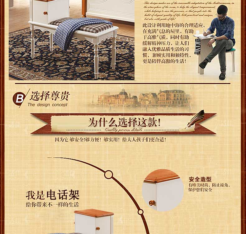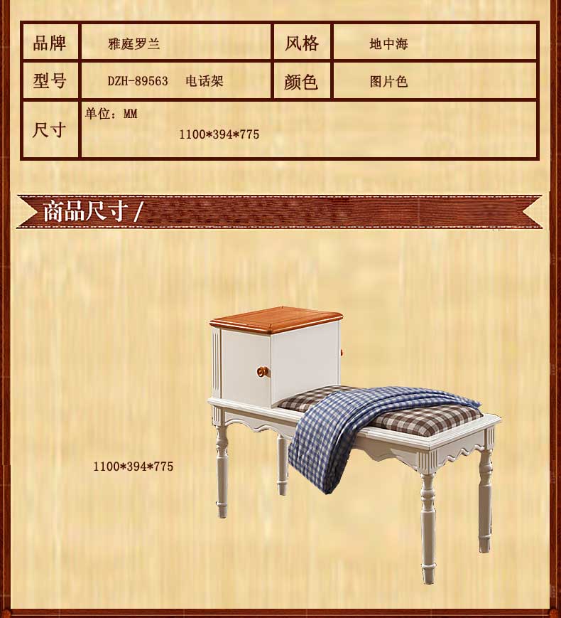 雅庭罗兰新款床前凳床尾凳地中海风格电话凳子DZH-89563电话架