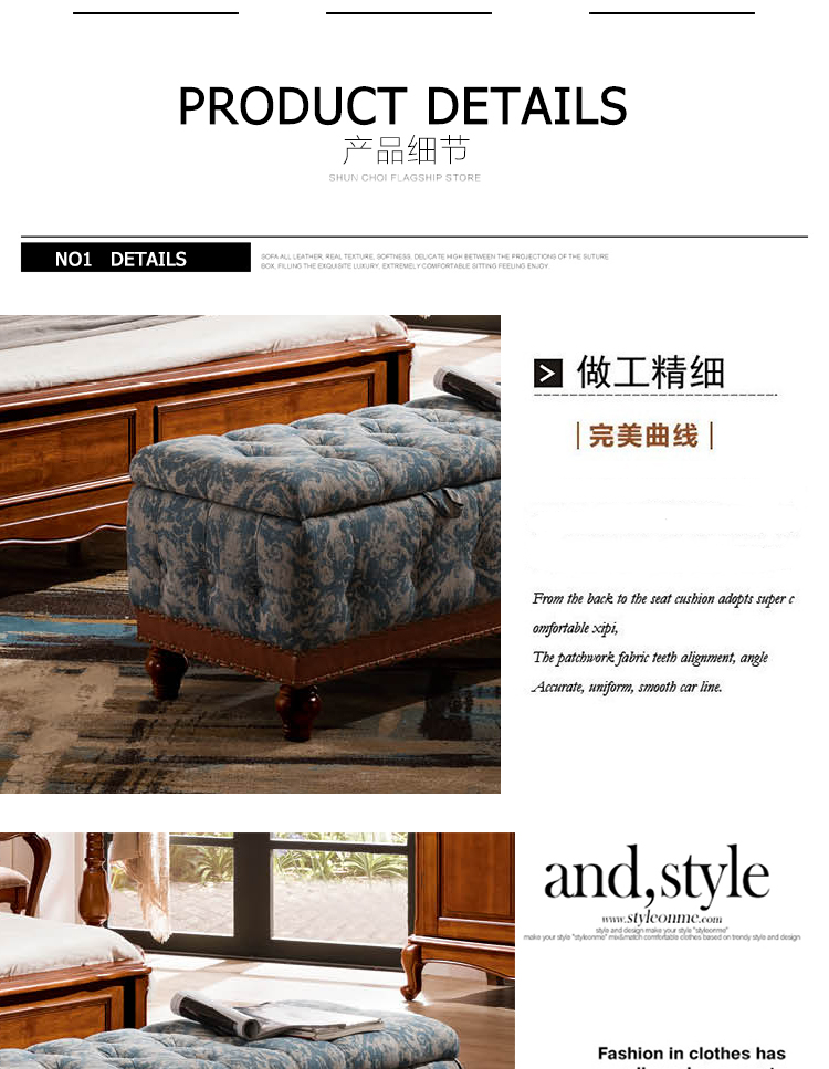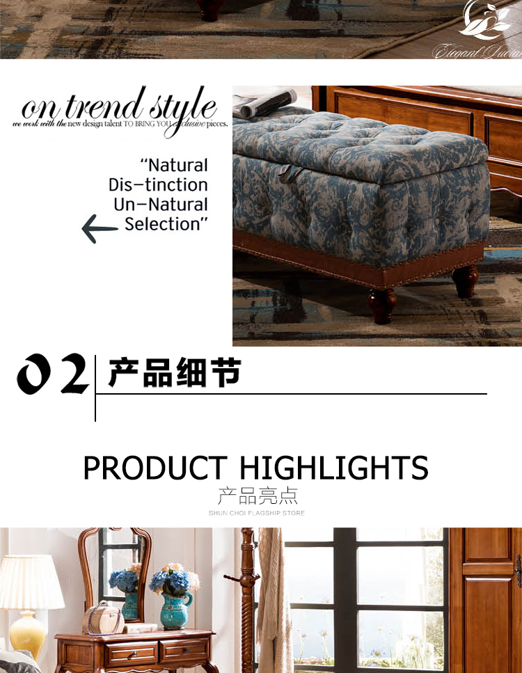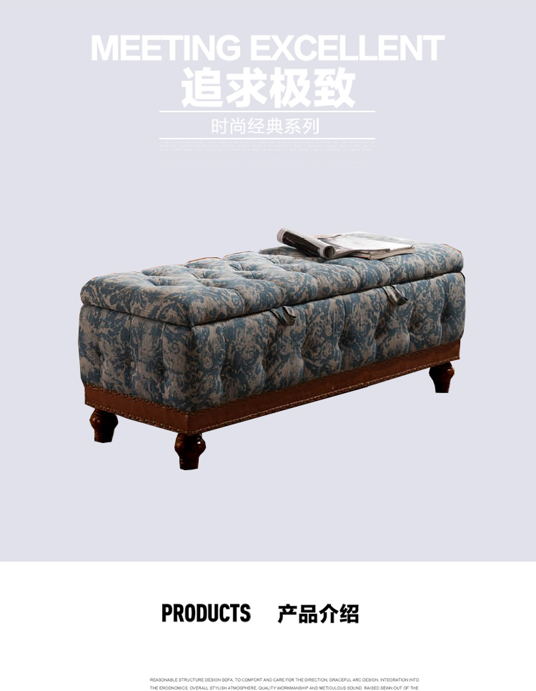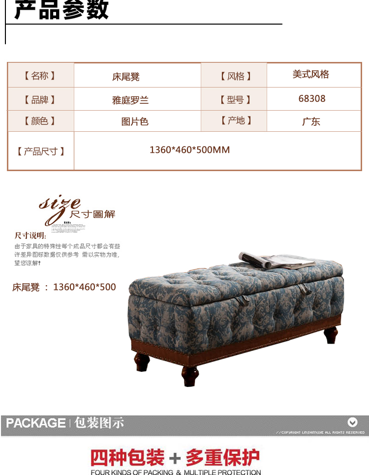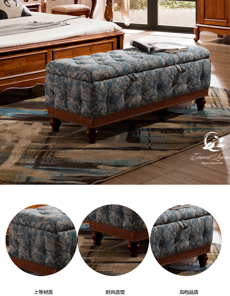 雅庭罗兰 美式床尾凳 美式换鞋凳实木做旧全实木床尾凳 68308