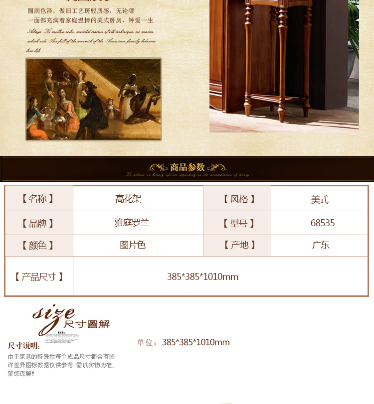 雅庭罗兰 美式简约层架角落架花架转角架子书架客厅置物架 68535