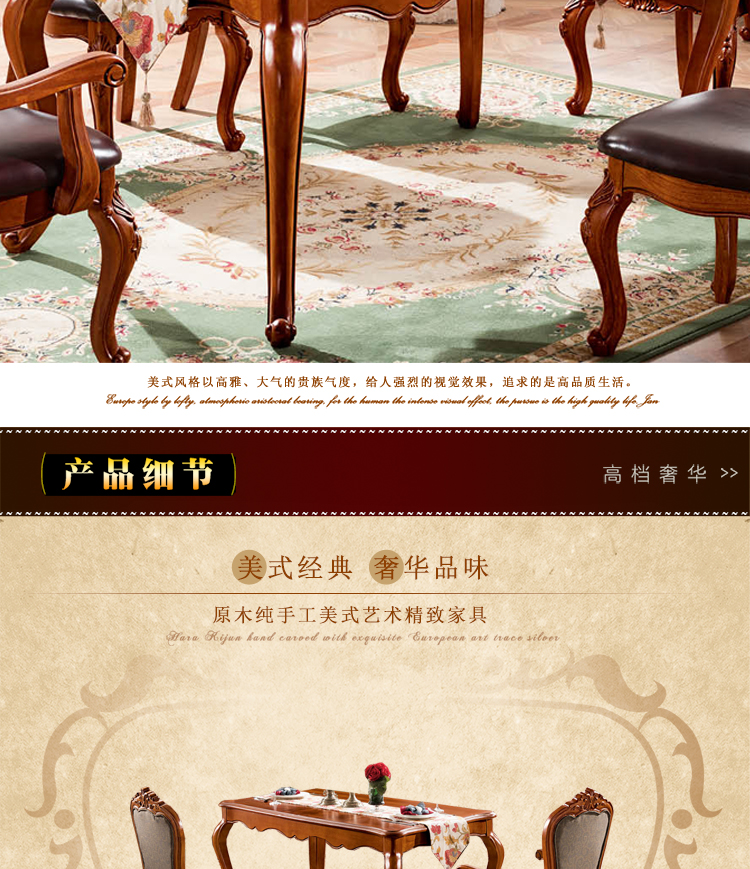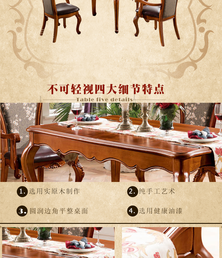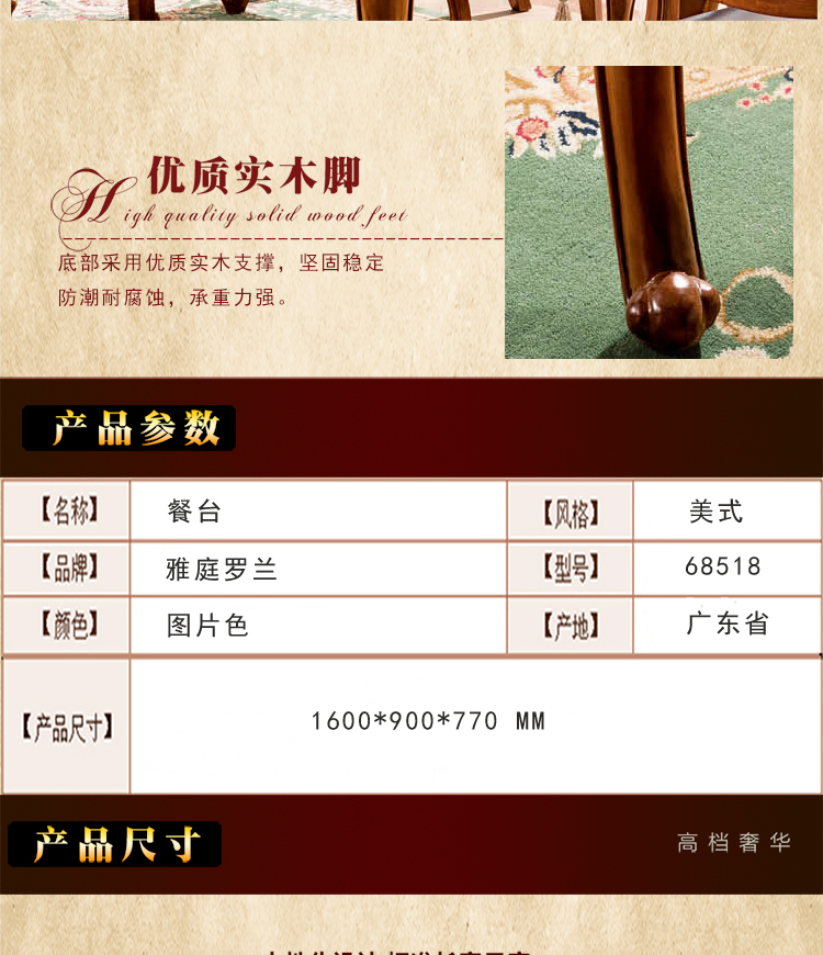 雅庭罗兰 美式乡村餐桌简约小户型长方形实木饭桌家用4/6人复古家具 68518