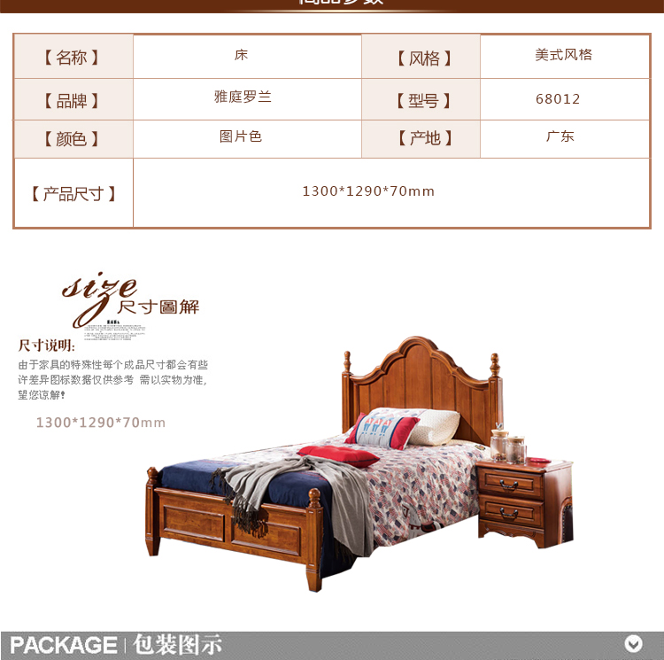 雅庭罗兰 美式实木床美式乡村双人床大床家具婚床 68012