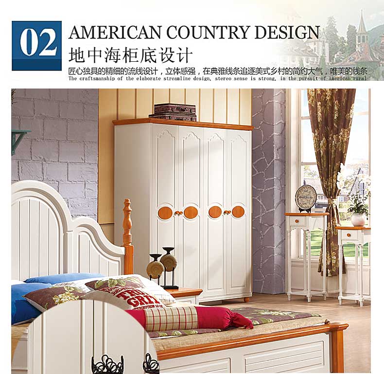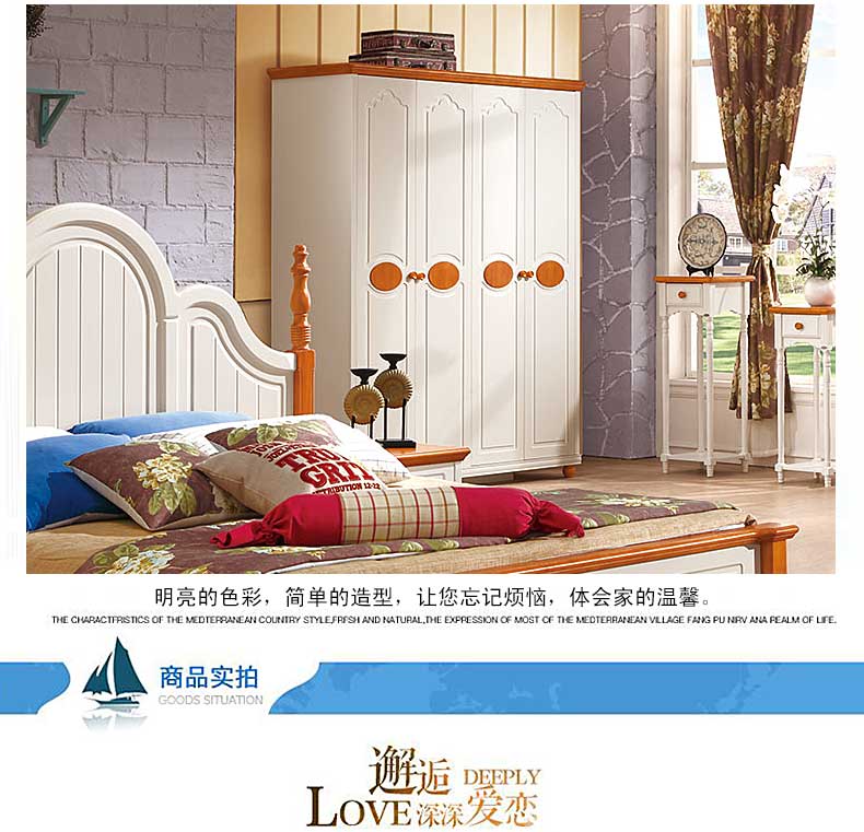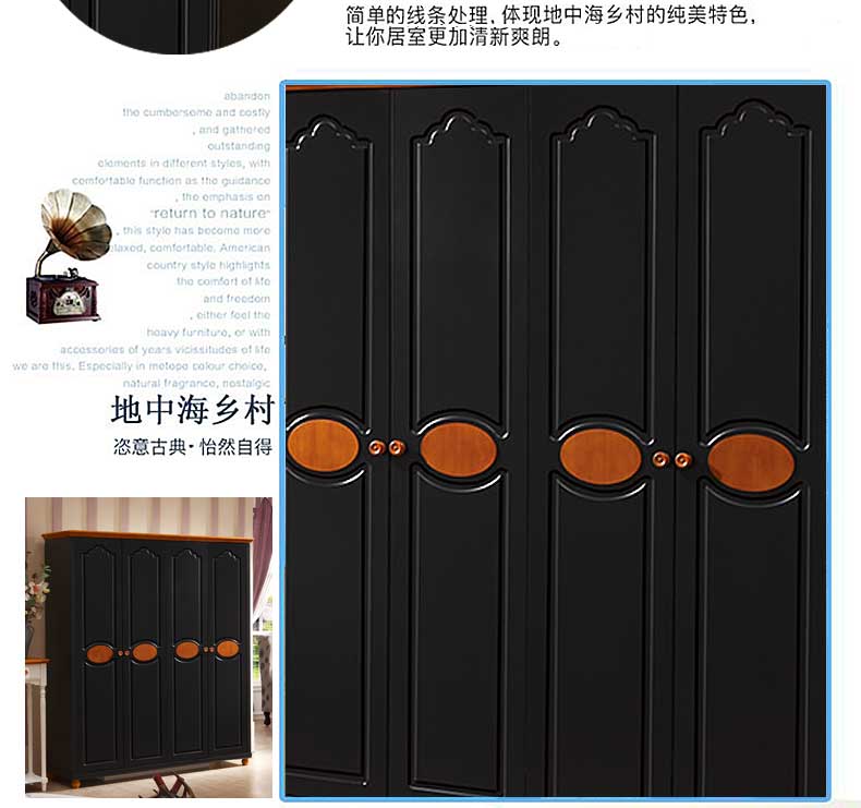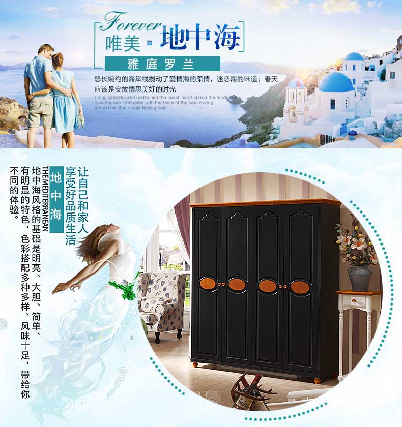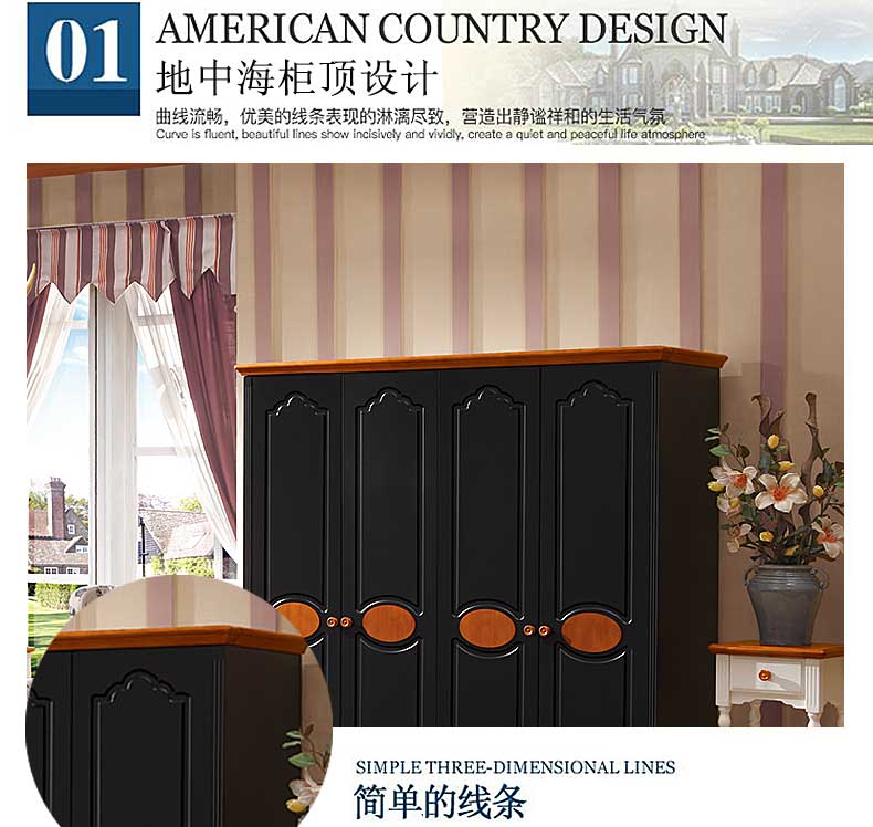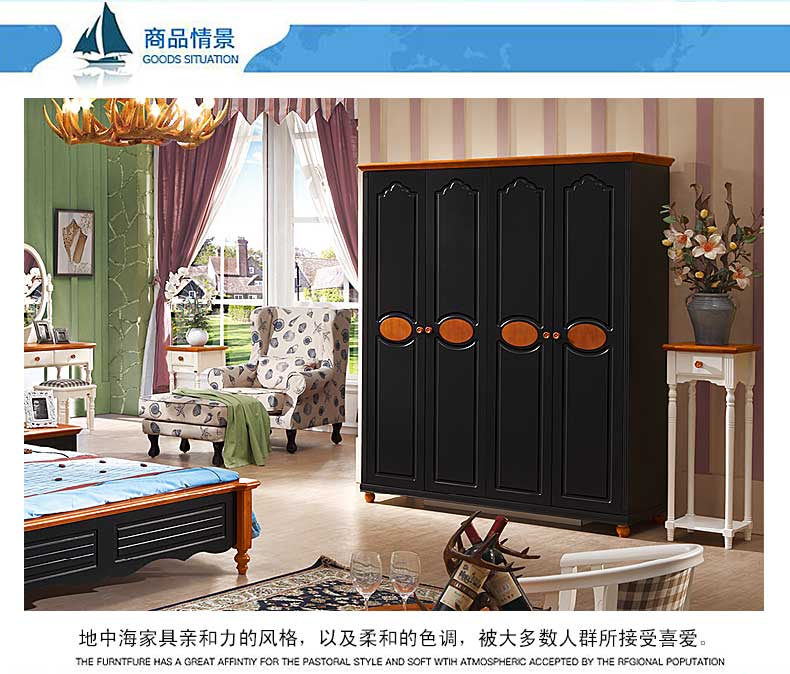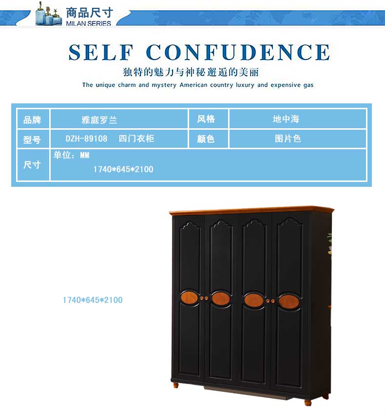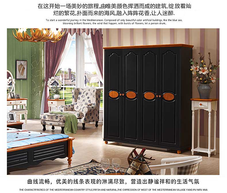 雅庭罗兰地中海风格衣柜四门乡村大衣橱平开门衣柜DZH-89108四门衣柜