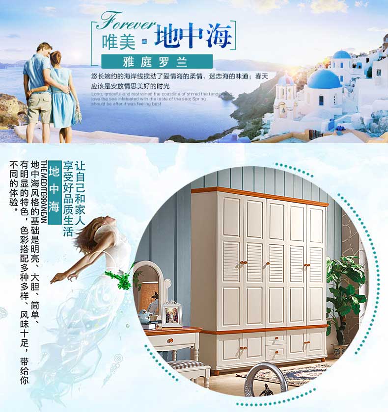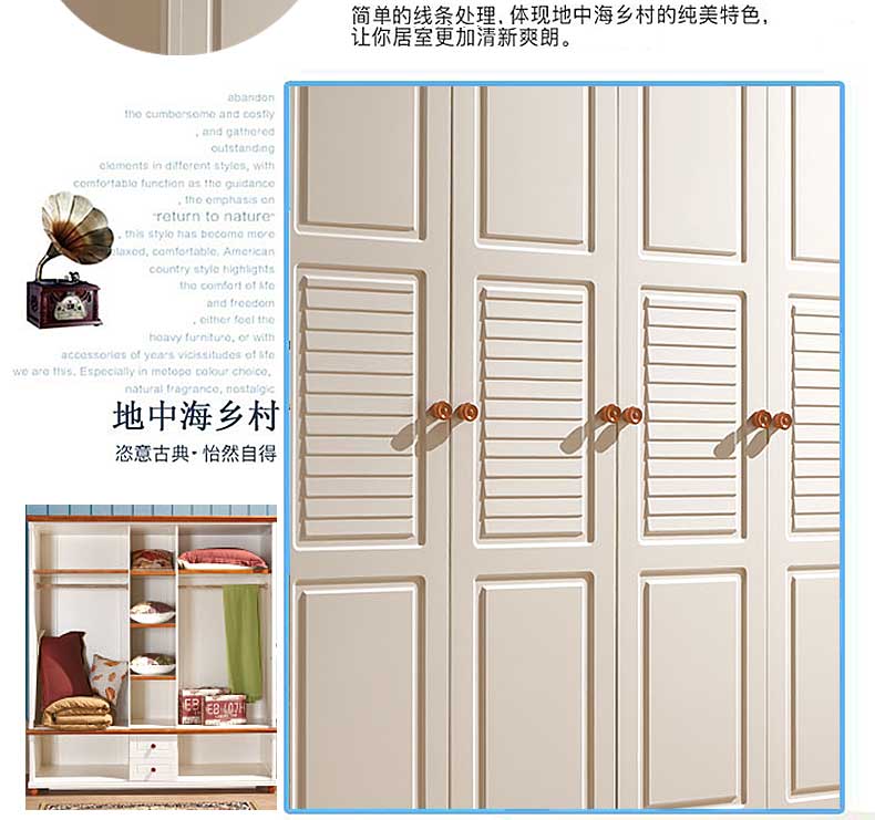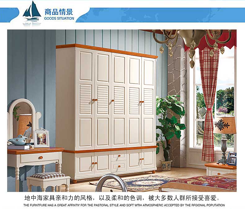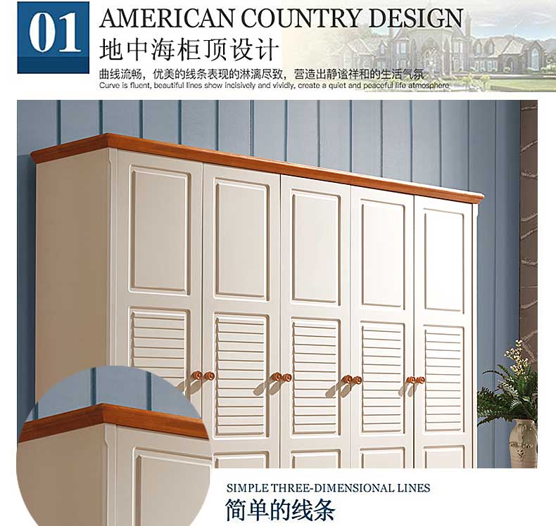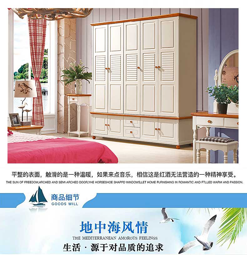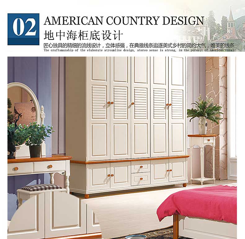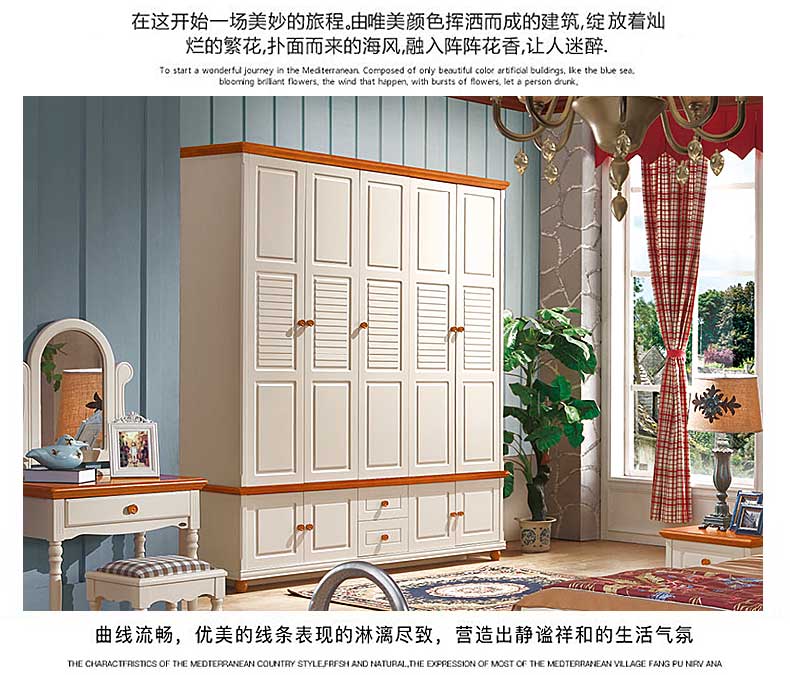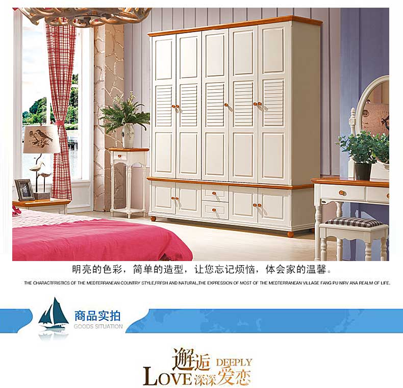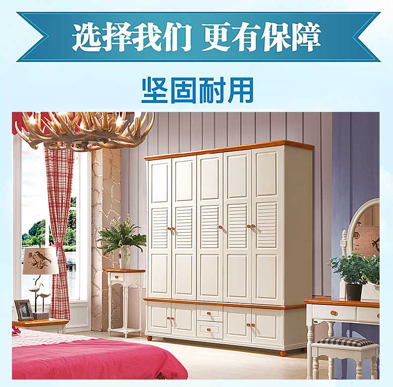雅庭罗兰地中海衣柜五门乡村衣柜卧室家具整体白色田园风格大衣橱DZH-89159五门衣柜
