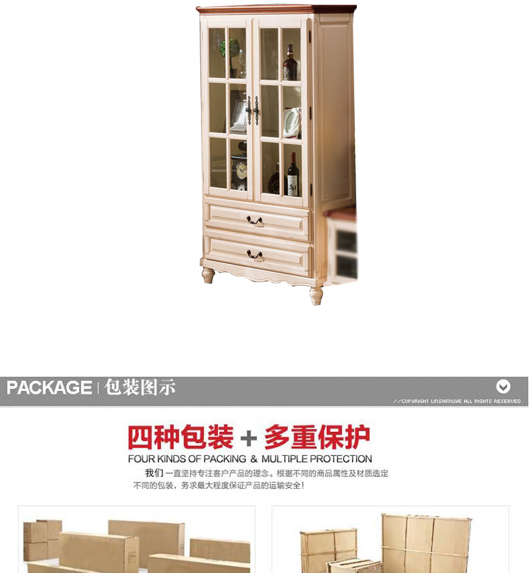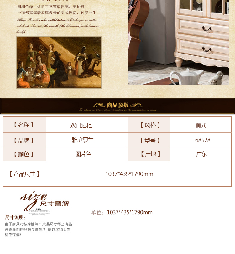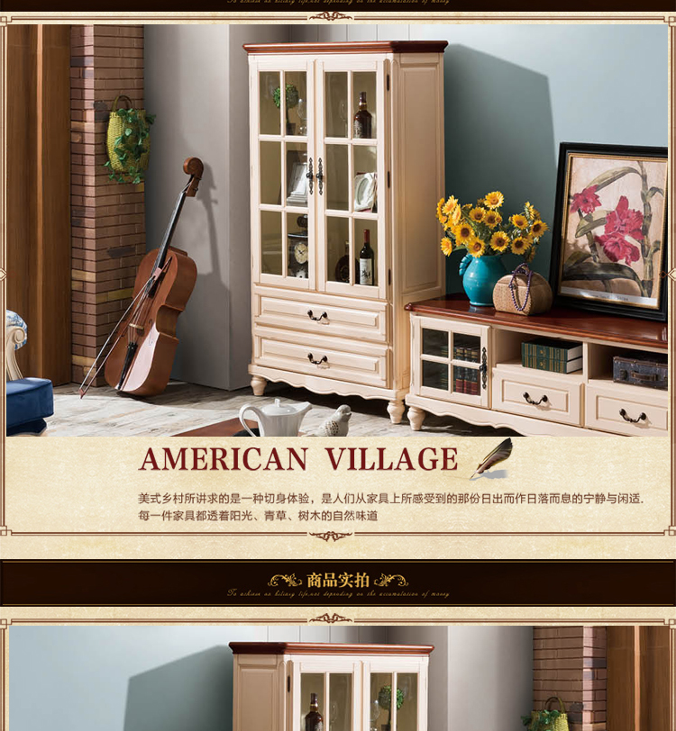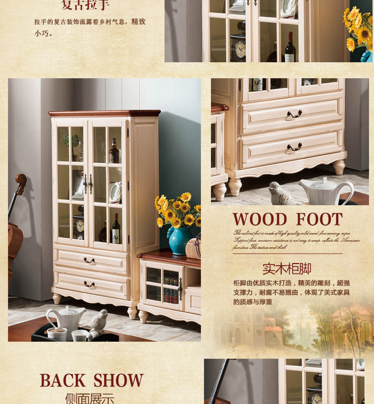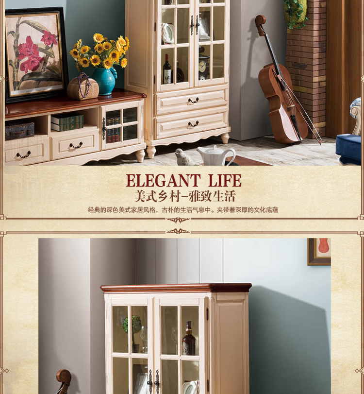 雅庭罗兰 美式白色酒柜实木 美式双门酒柜玻璃门储物厅柜 客厅家具68528