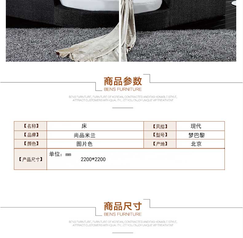 尚品米兰 现代大床新款床卧室大床百搭床2.2米创意床 梦巴黎