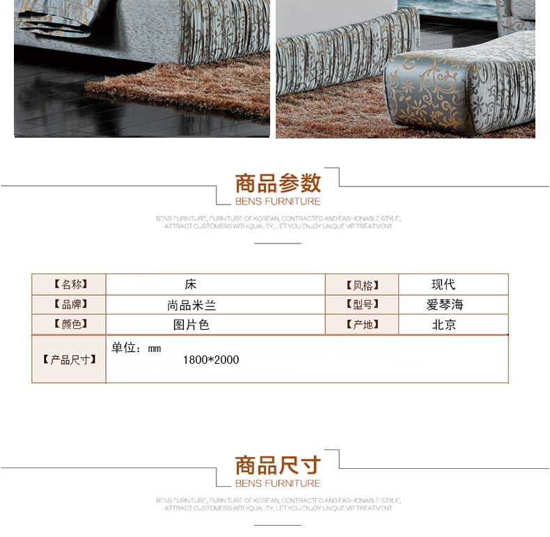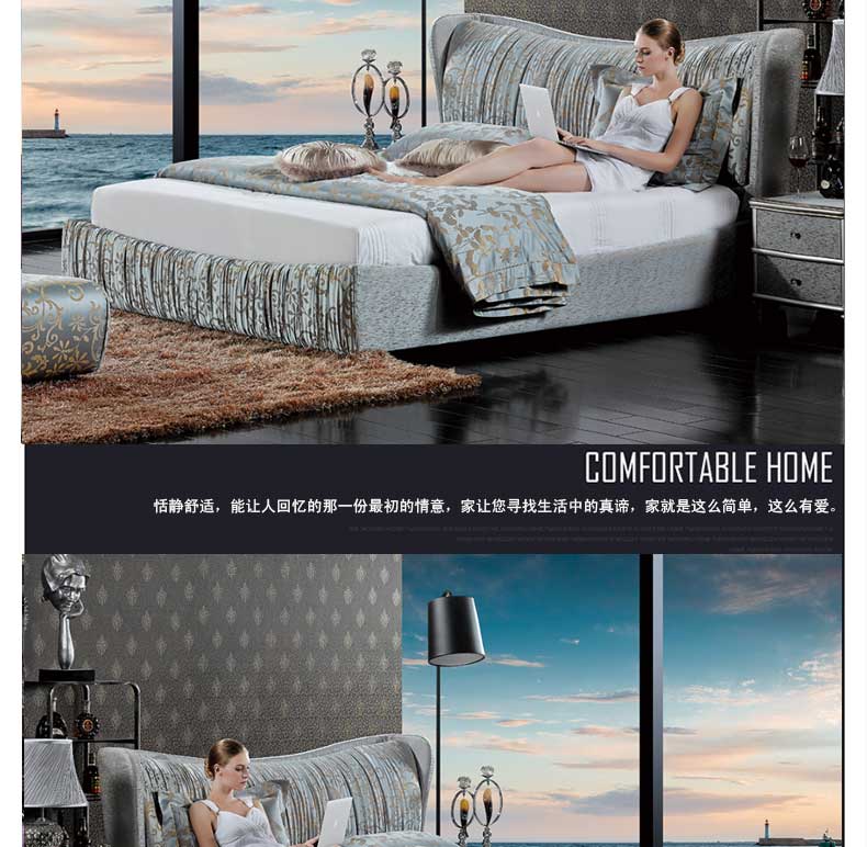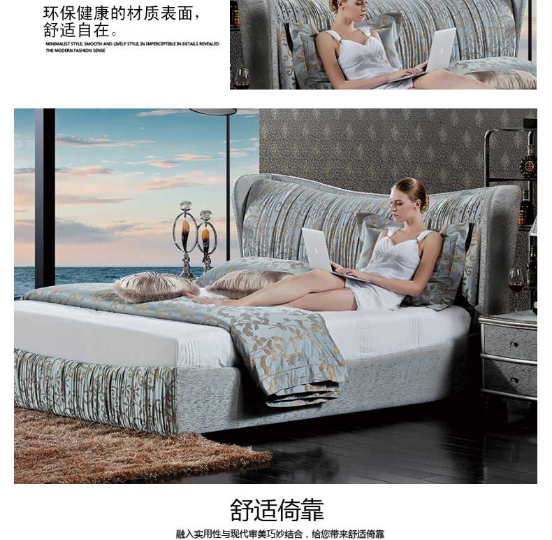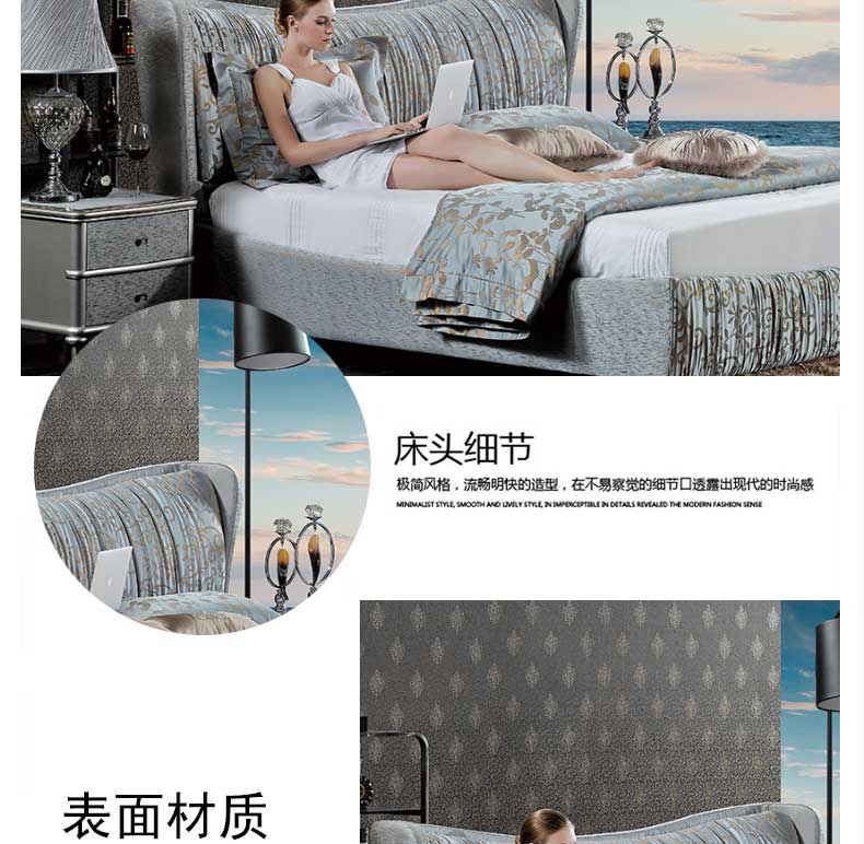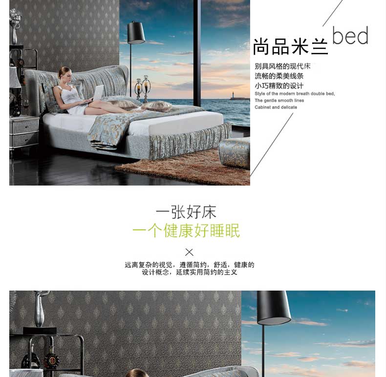尚品米兰 卧室新款床百搭双人床现代双人婚床1.8米床 爱琴海