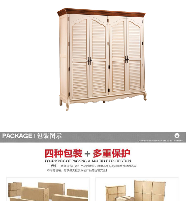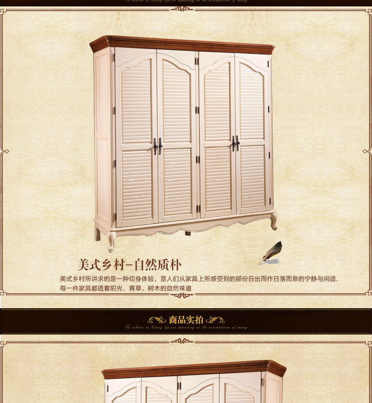雅庭罗兰 美式乡村白色衣柜 卧室四门衣柜 高档四门衣柜 大储藏柜 68102