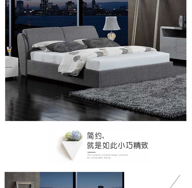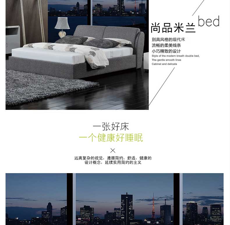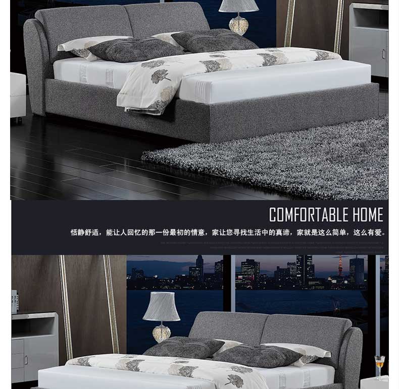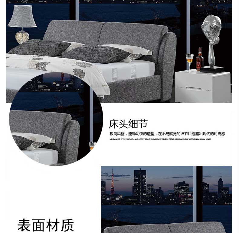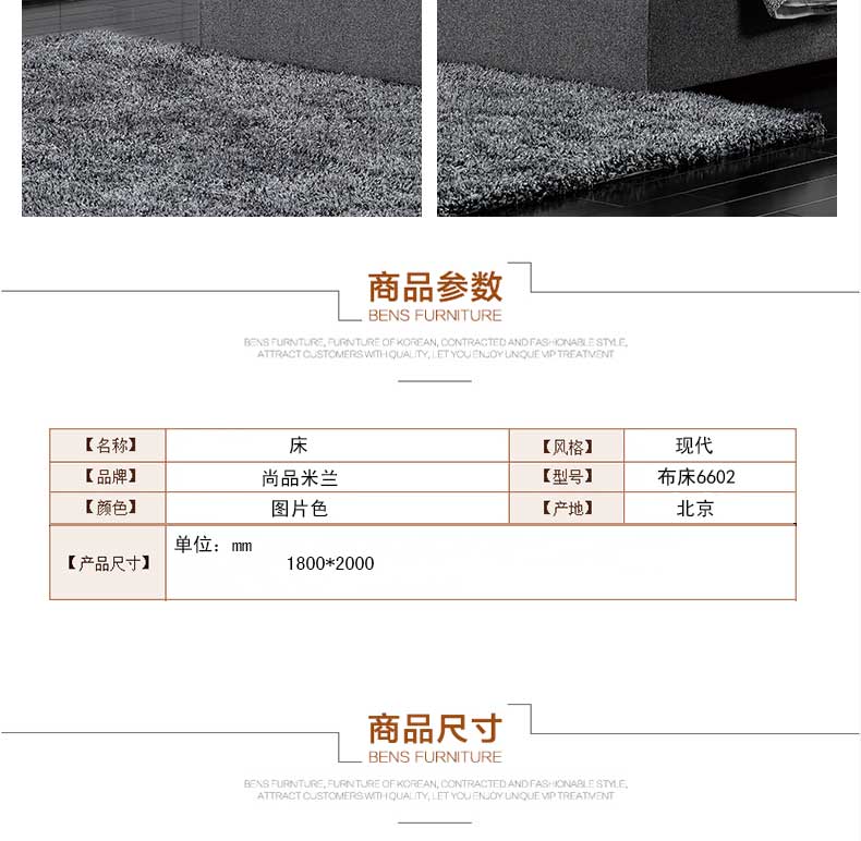 尚品米兰 百搭大床新款卧室双人床布艺婚床 布床6602