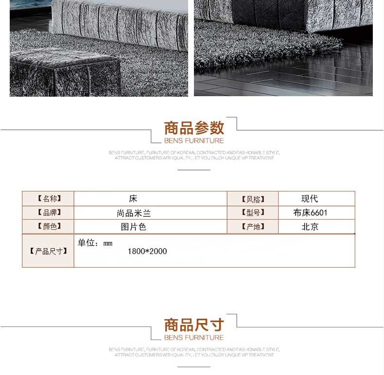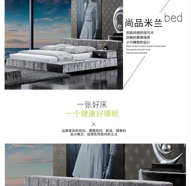 尚品米兰 新款双人床布艺床现代大床百搭大床 布床6601