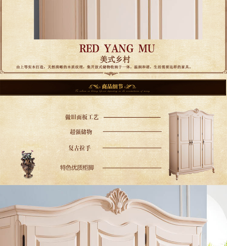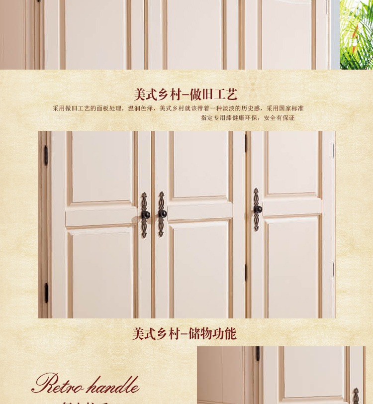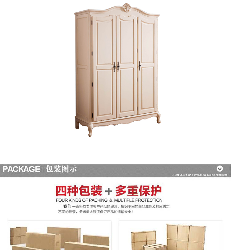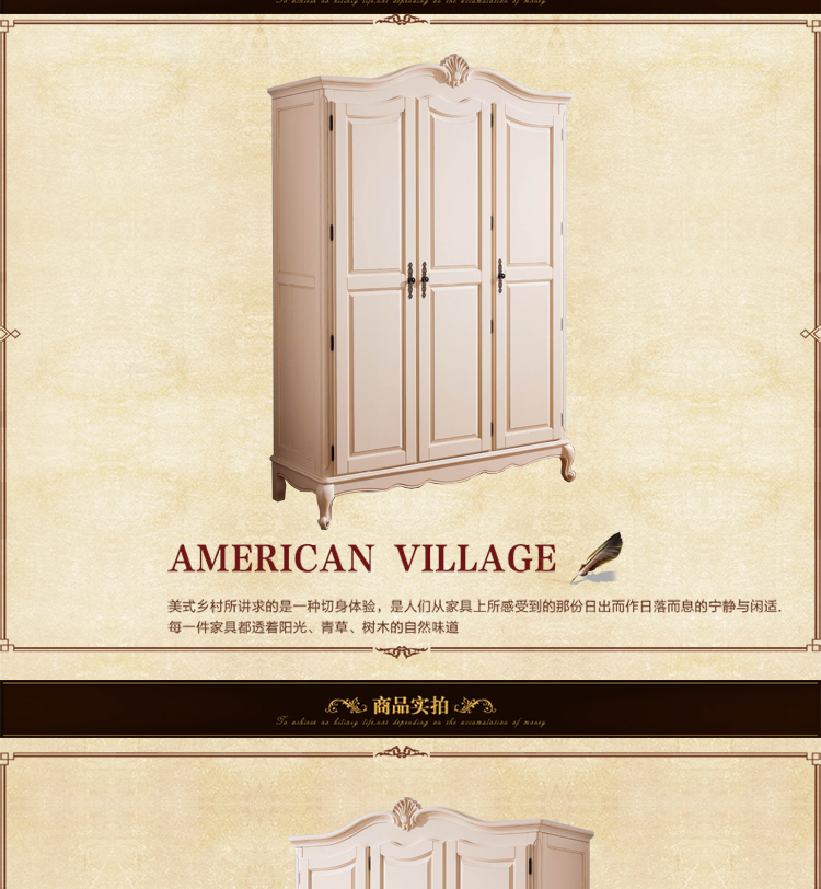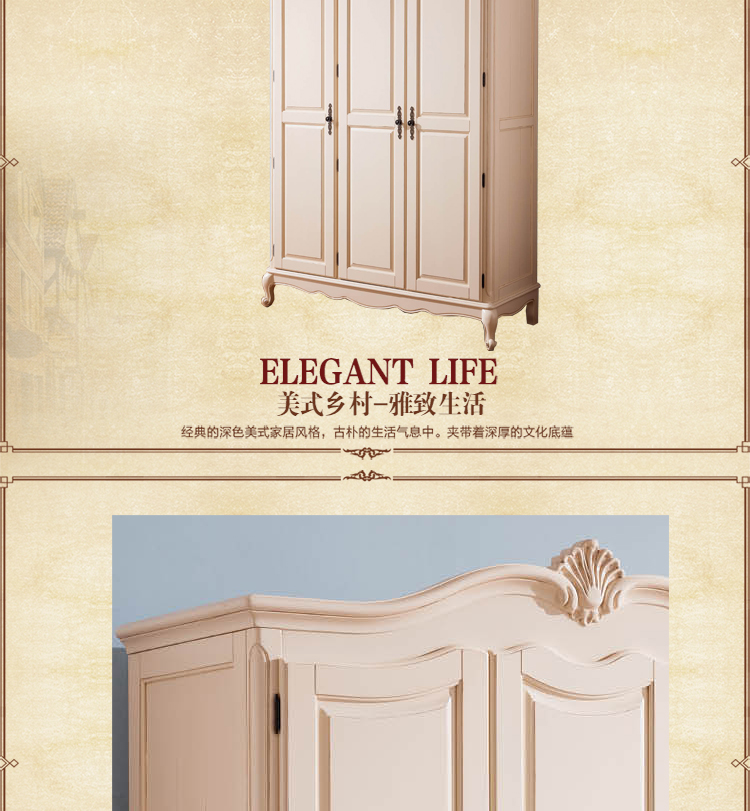雅庭罗兰 美式乡村纯实木衣柜 美式高档卧室三门白色衣柜 68106