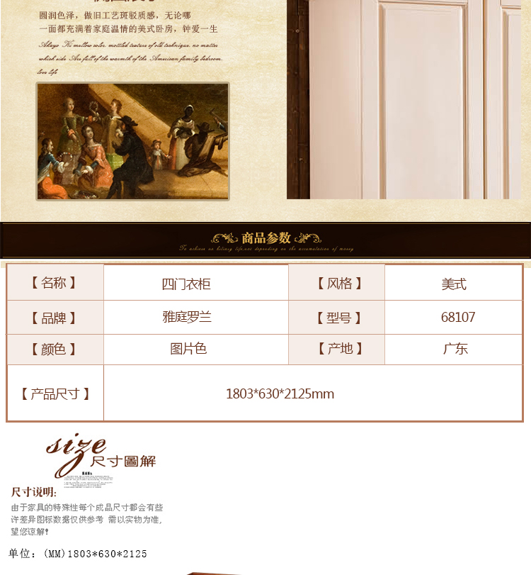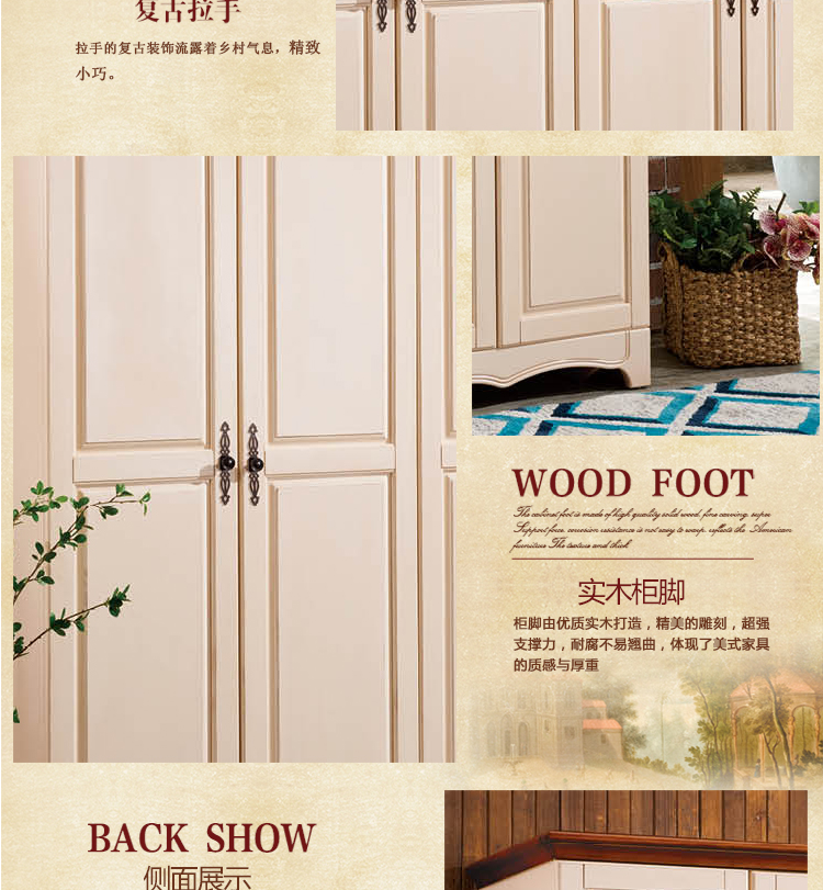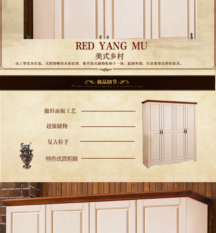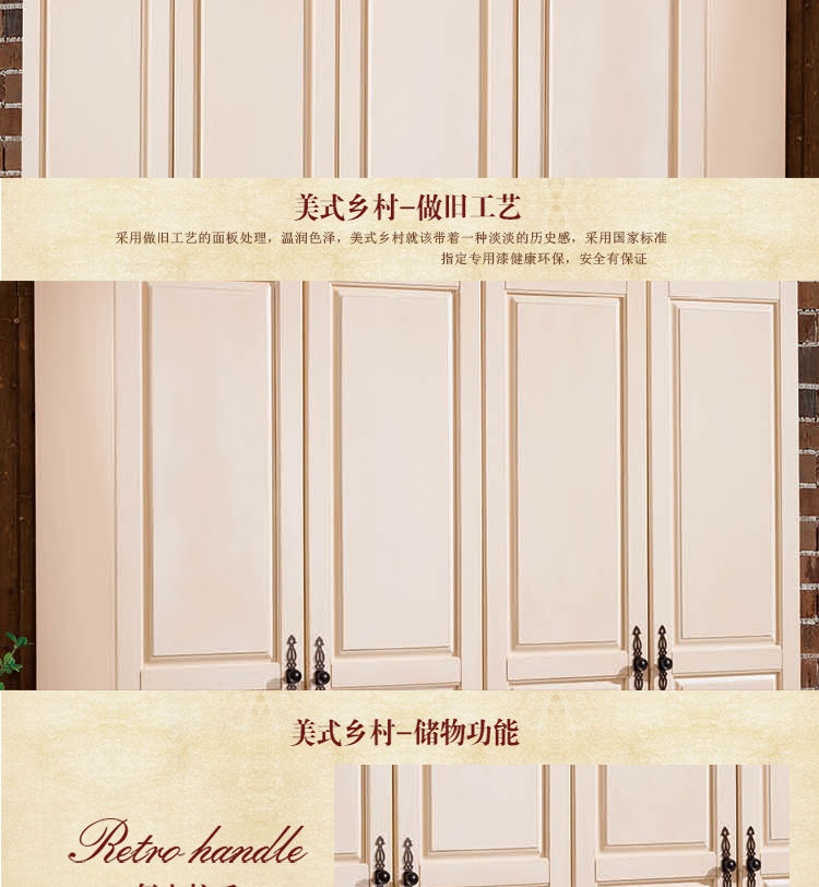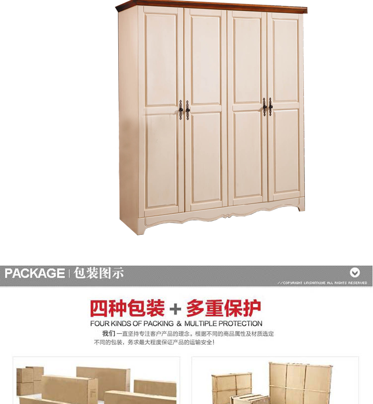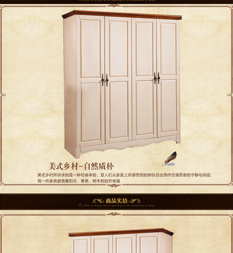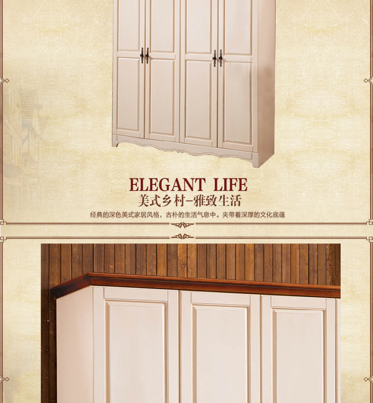 雅庭罗兰 美式乡村纯实木衣柜 美式高档卧室四门白色衣柜 68107