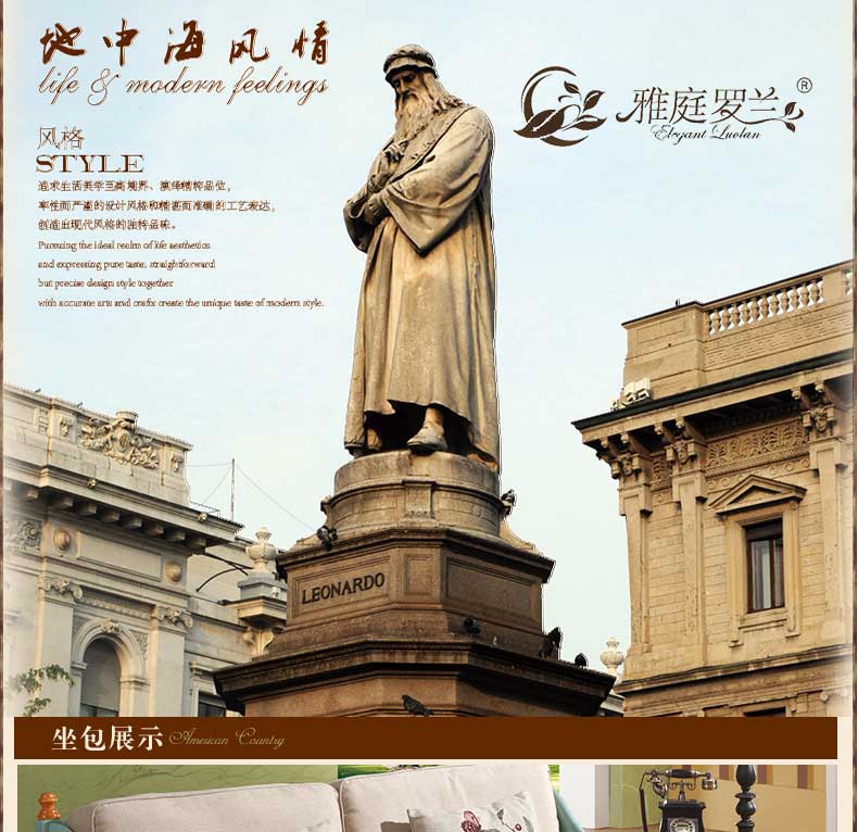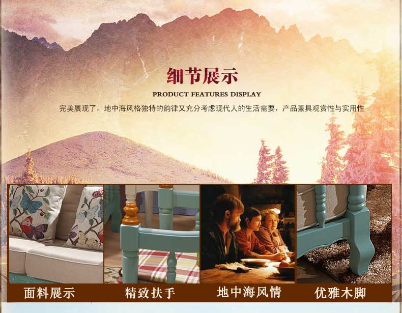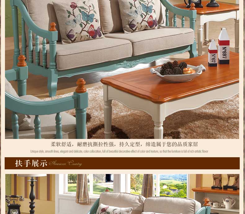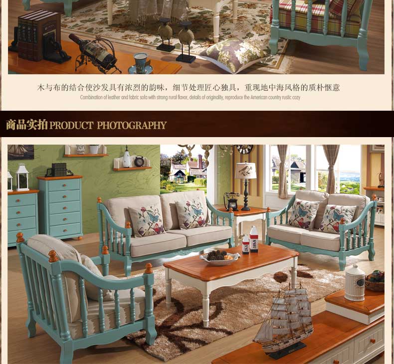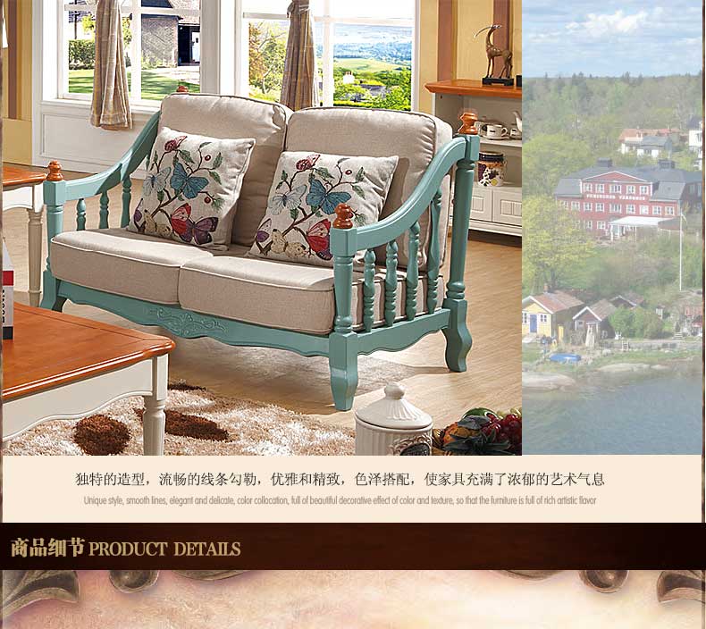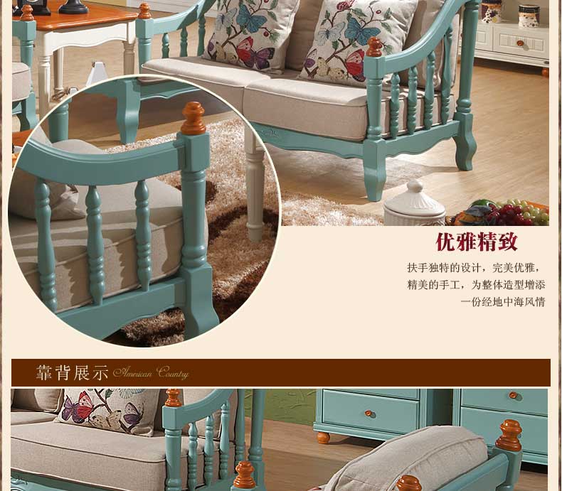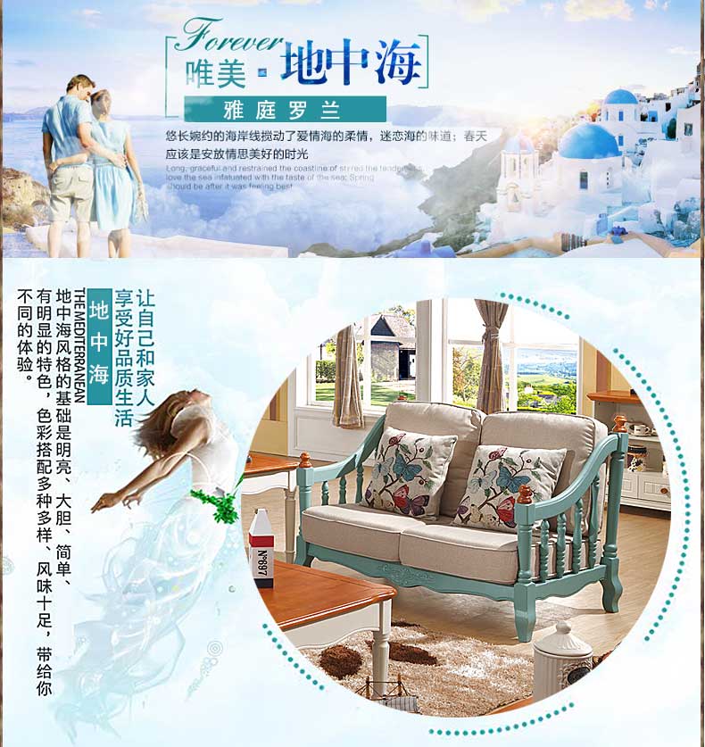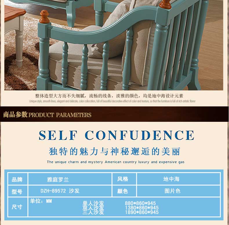 雅庭罗兰地中海布艺沙发小户型田园乡村沙发组合DZH-89572 沙发