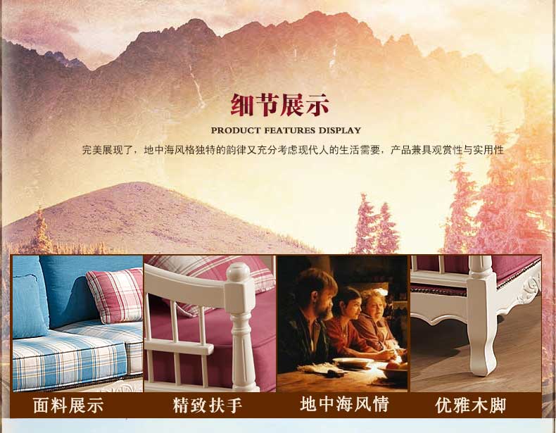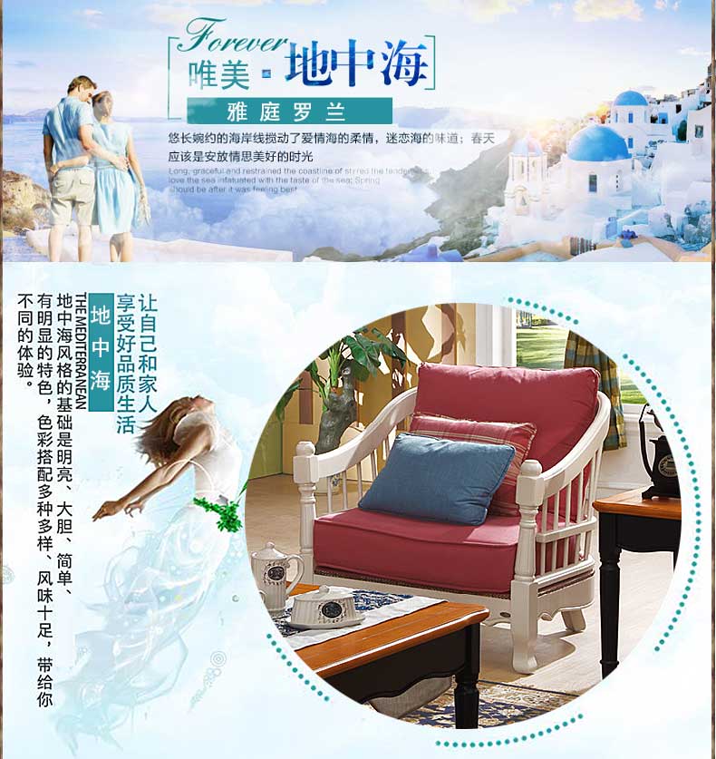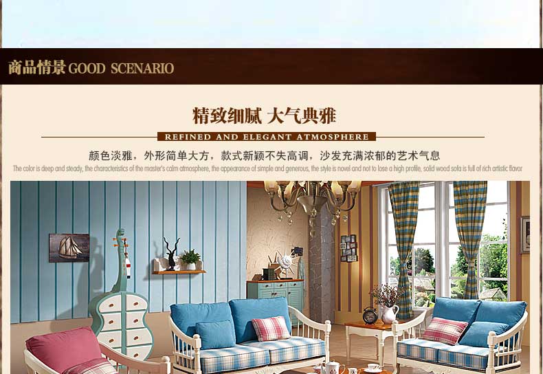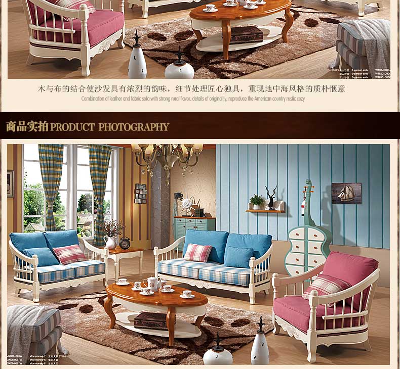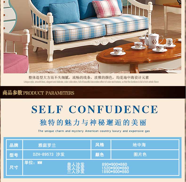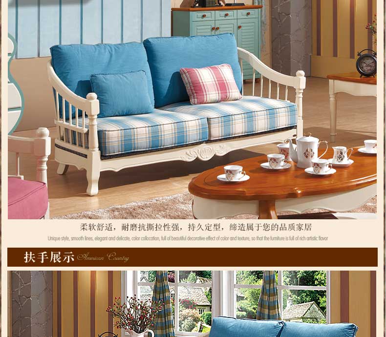 雅庭罗兰布艺沙发田园乡村小户型地中海沙发组合客厅家具DZH-89573沙发