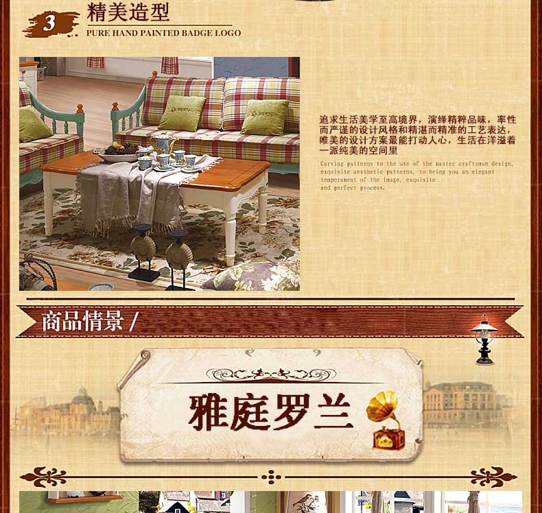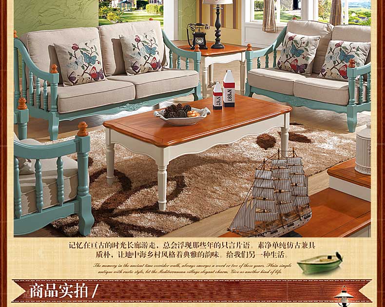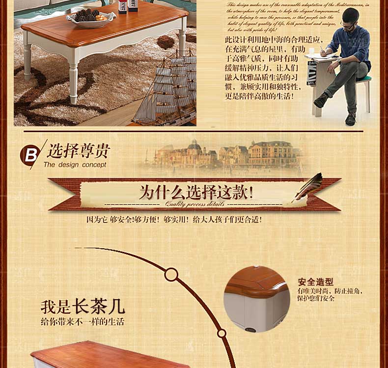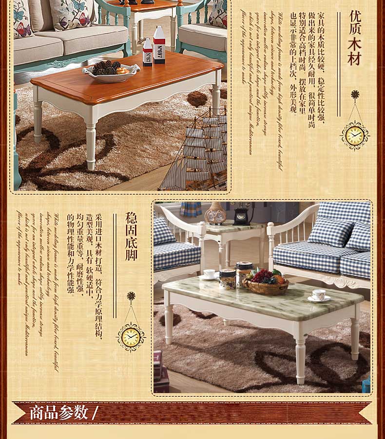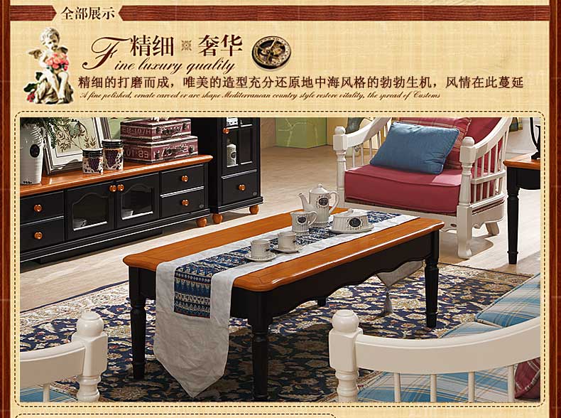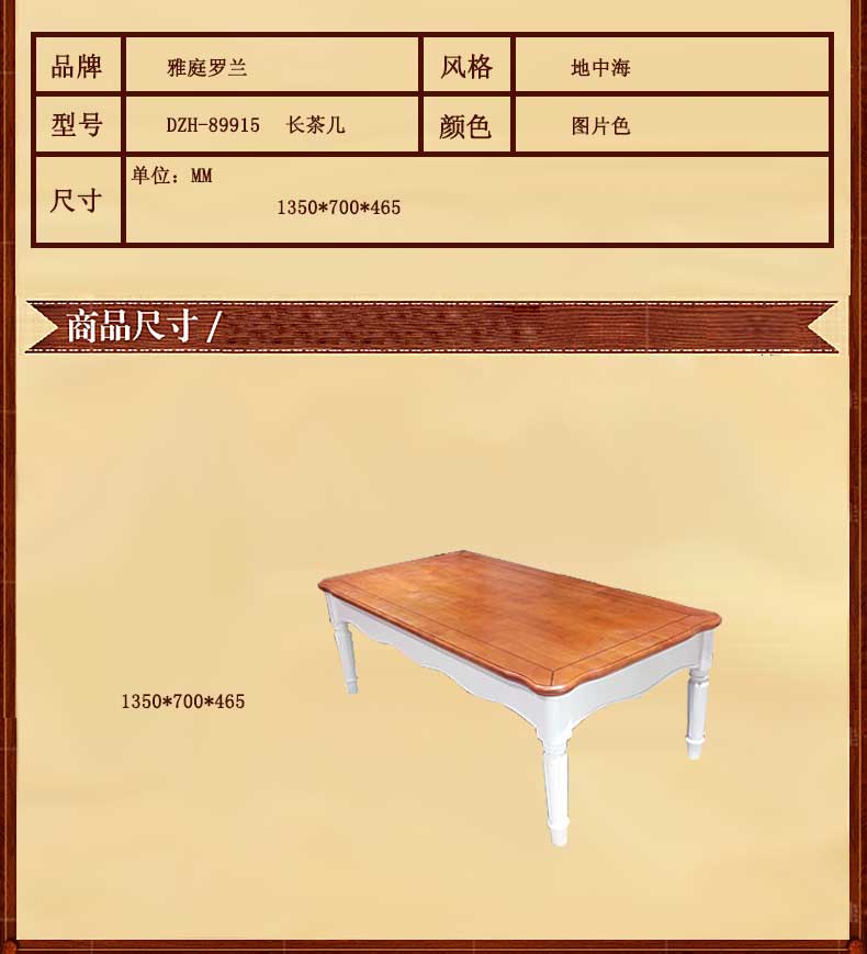 雅庭罗兰乡村田园茶几客厅小户型家具地中海茶几DZH-89915长茶几