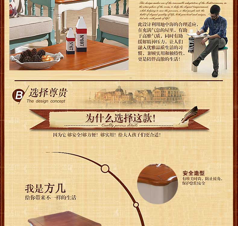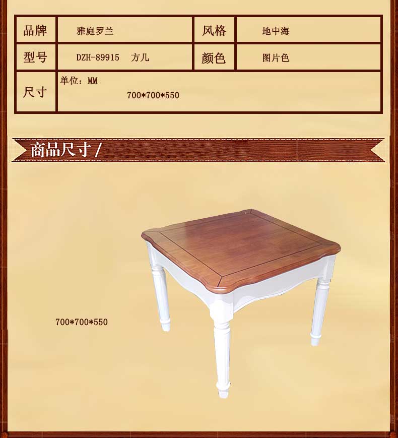 雅庭罗兰新款地中海茶几家具小户型乡村角几田园边几DZH-89915方几