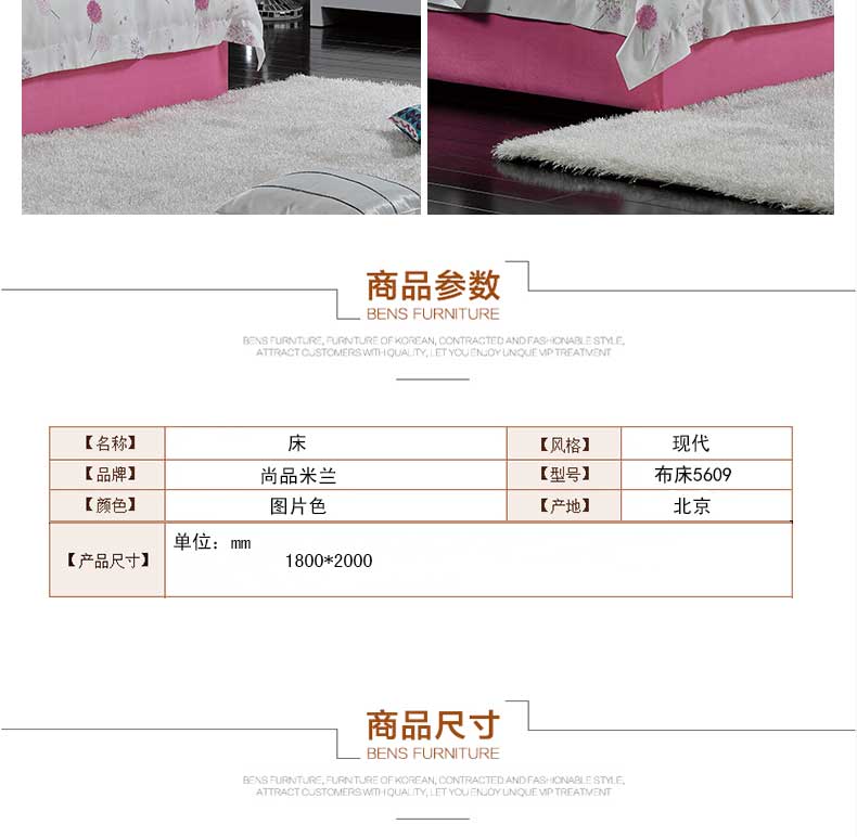 尚品米兰 新款双人床卧室大床公主床百搭婚床 布床5609