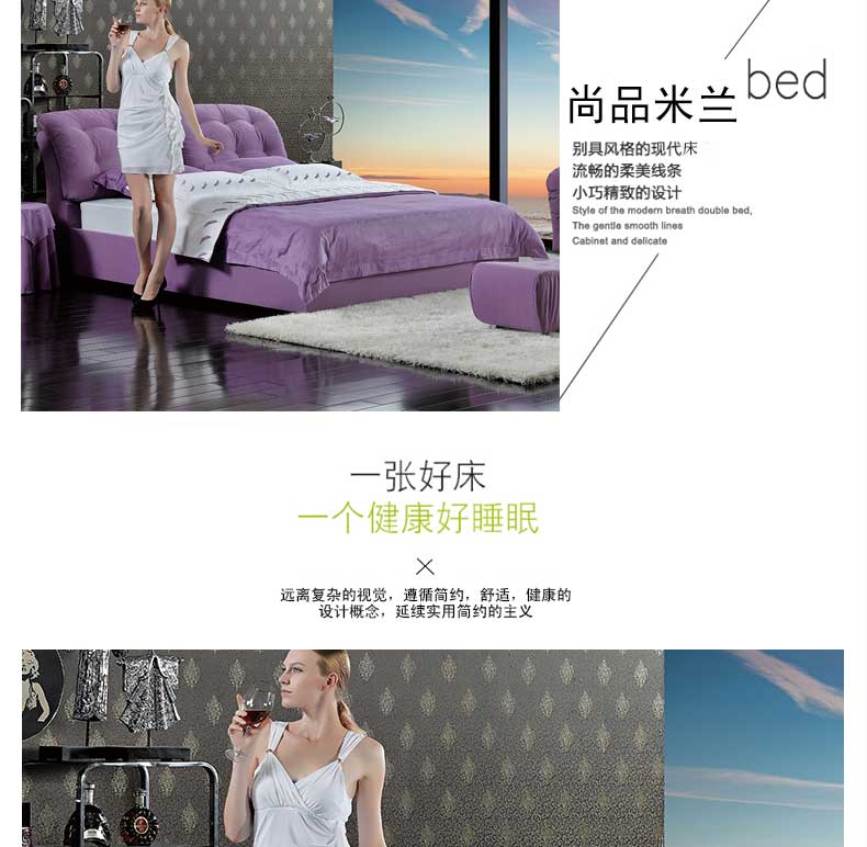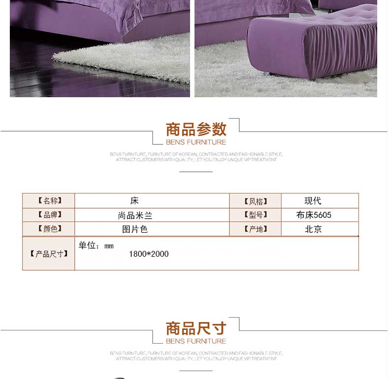 尚品米兰 现代新款床卧室高档双人床简约大床 布床5605