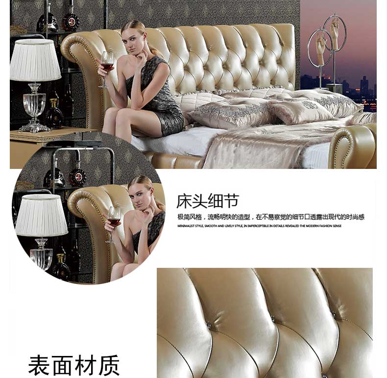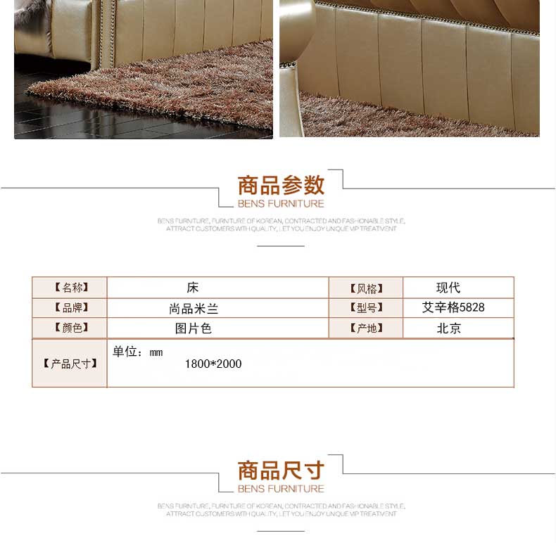 尚品米兰 卧室双人床皮床新款床现代大床 艾辛格