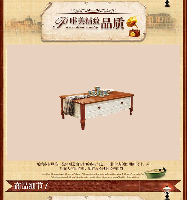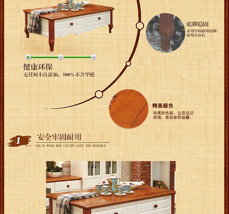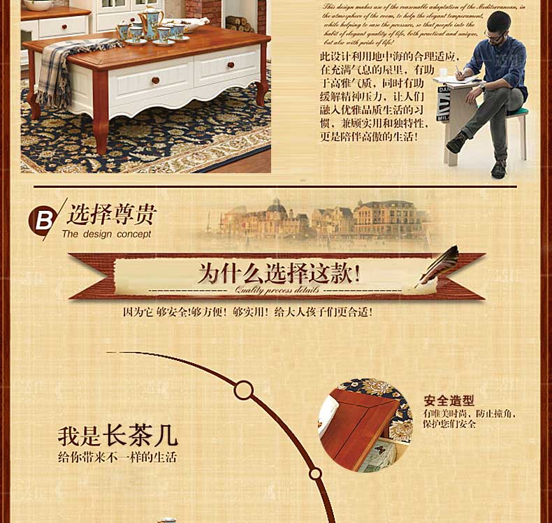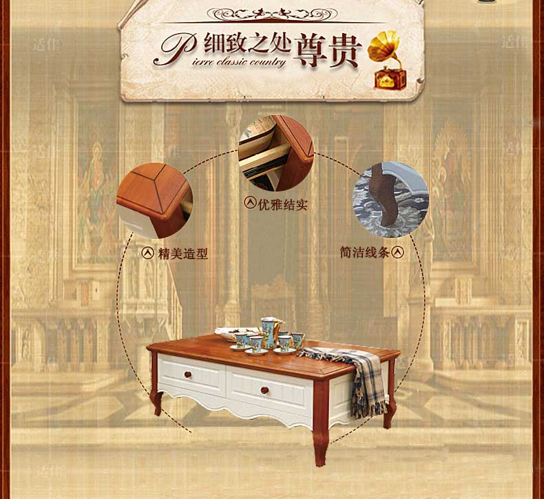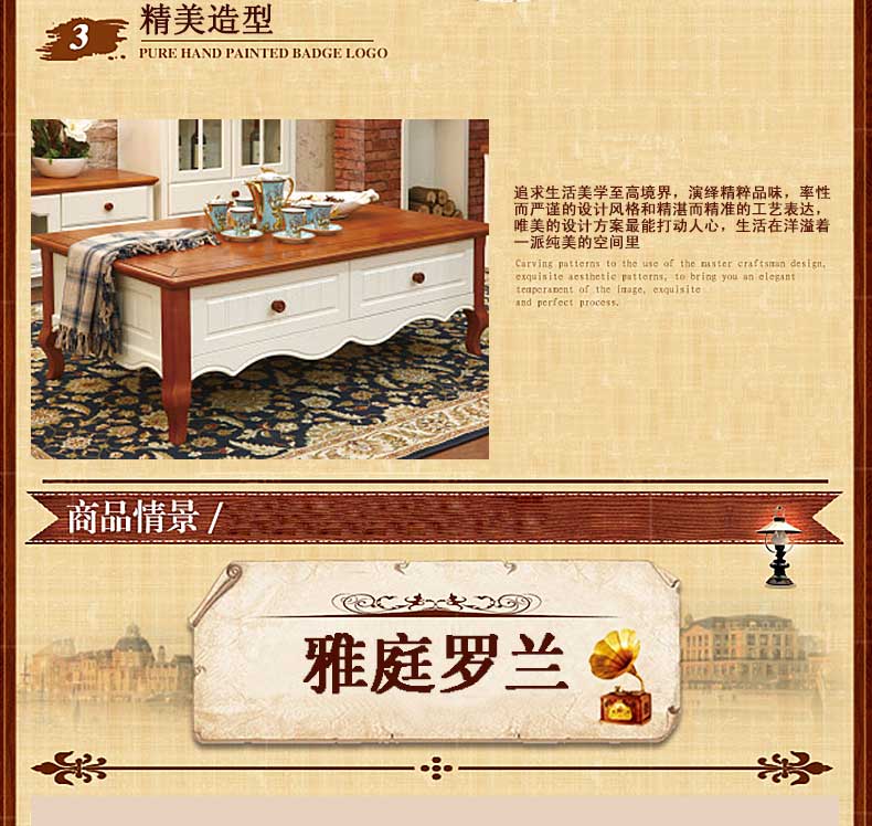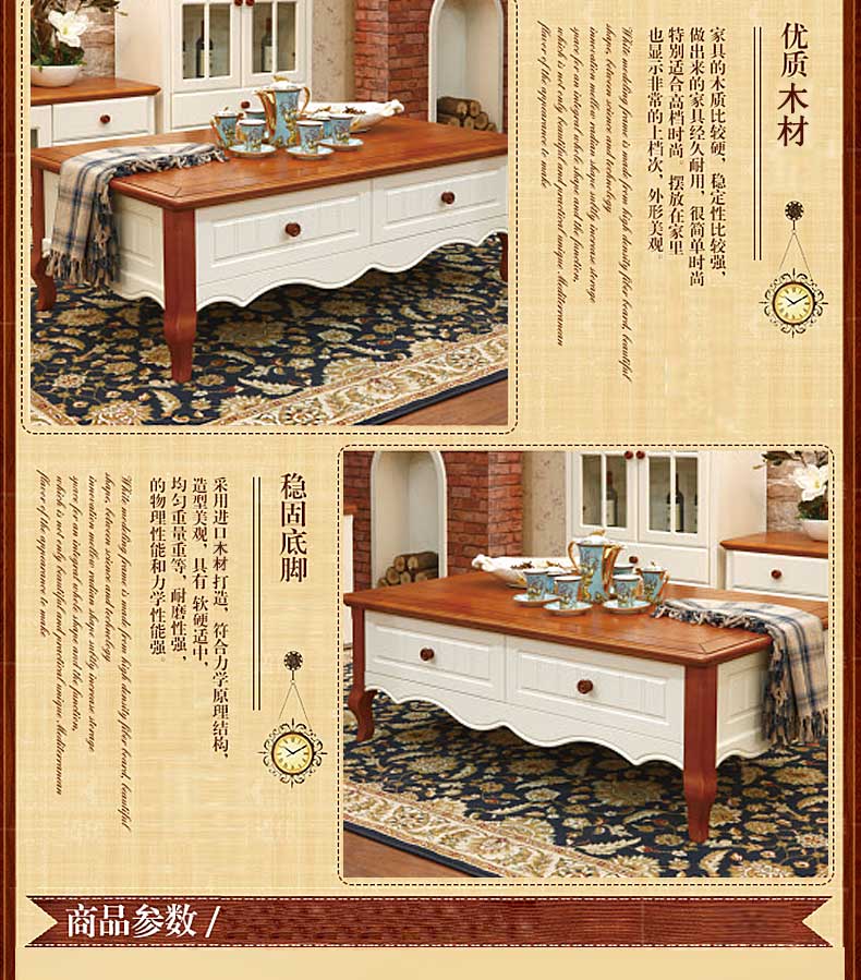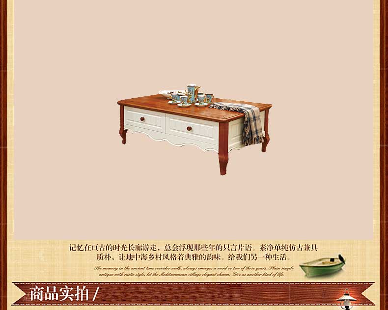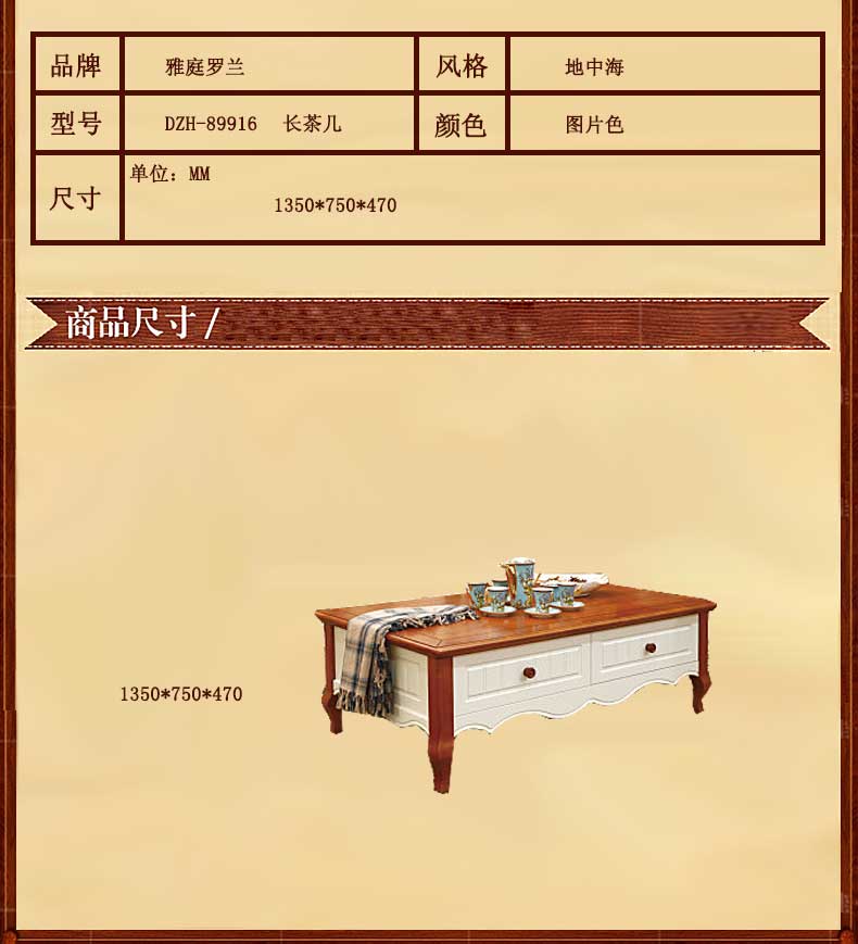雅庭罗兰地中海茶几客厅家具田园乡村茶桌咖啡桌DZH-89916长茶几