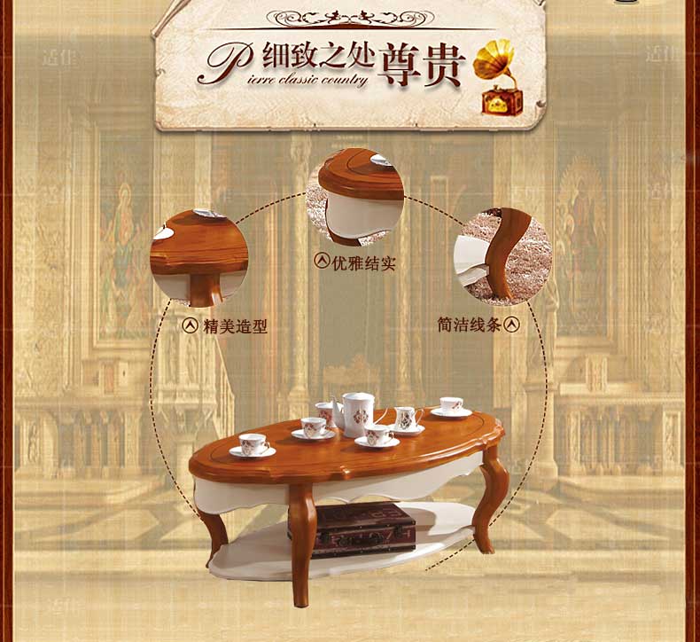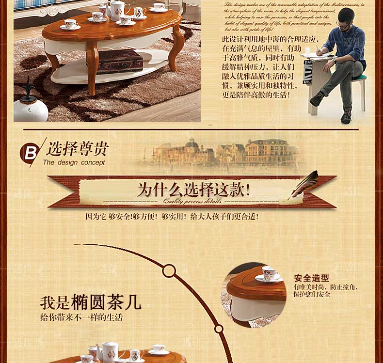 雅庭罗兰新款地中海茶几咖啡桌时尚圆茶桌DZH-89919椭圆茶几