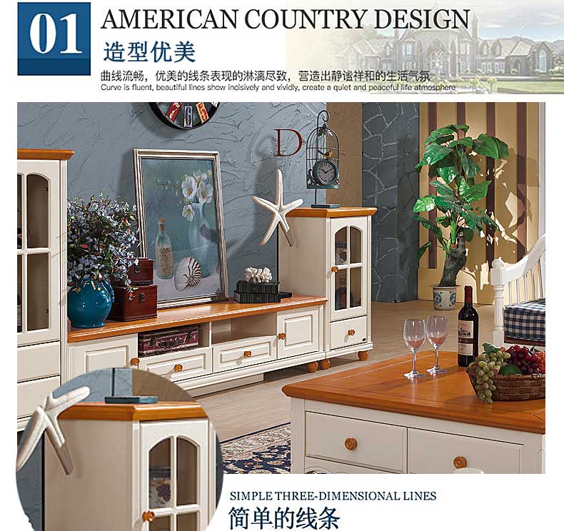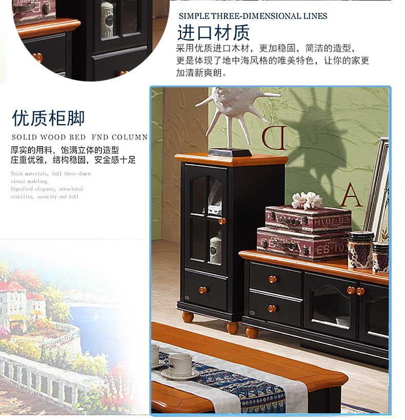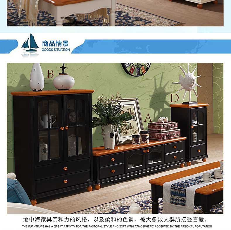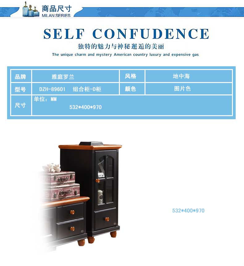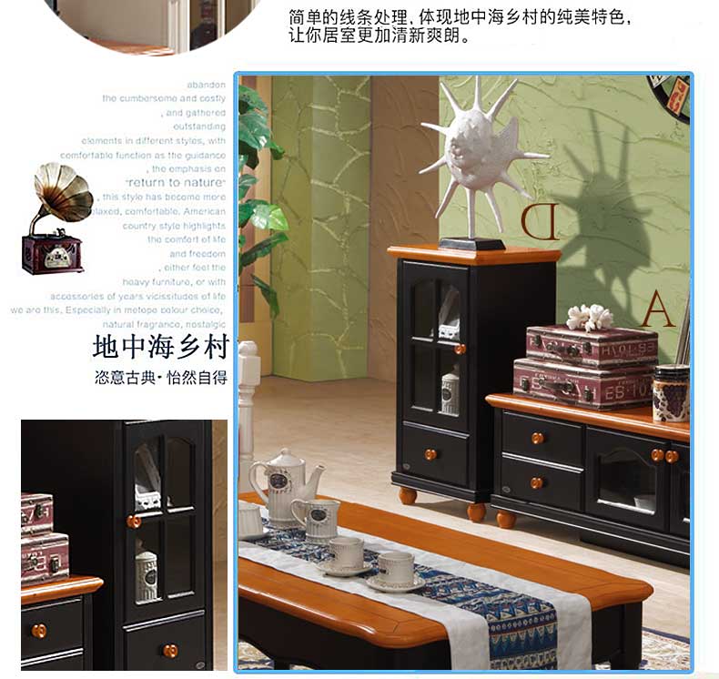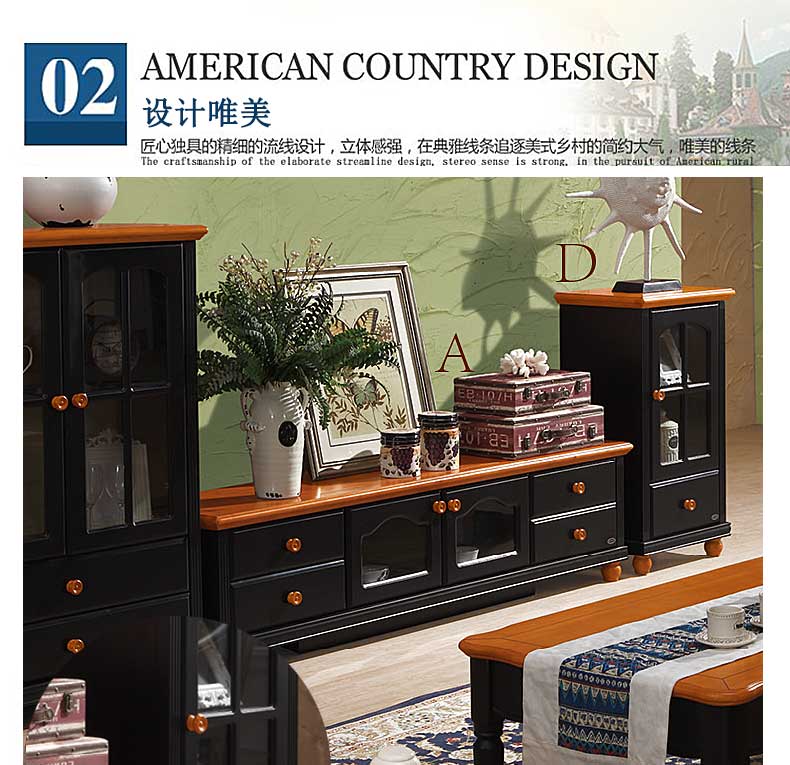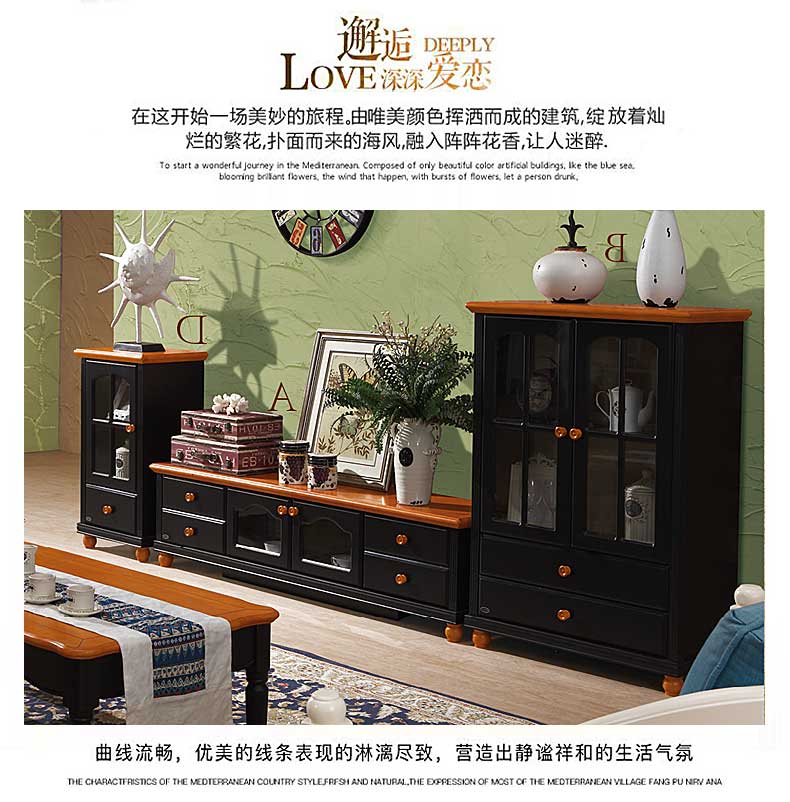雅庭罗兰新款田园客厅矮柜地中海书柜电视边柜展示收纳柜小酒柜DZH-89601组合柜-D柜