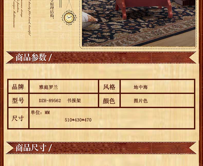 雅庭罗兰 新款书报架客厅装饰架地中海书报架 DZH-89562