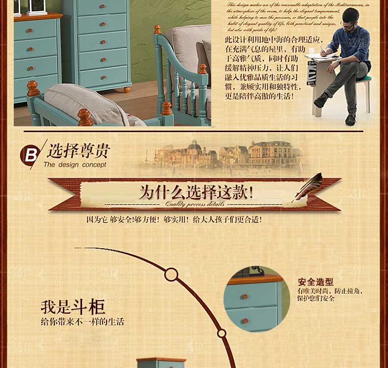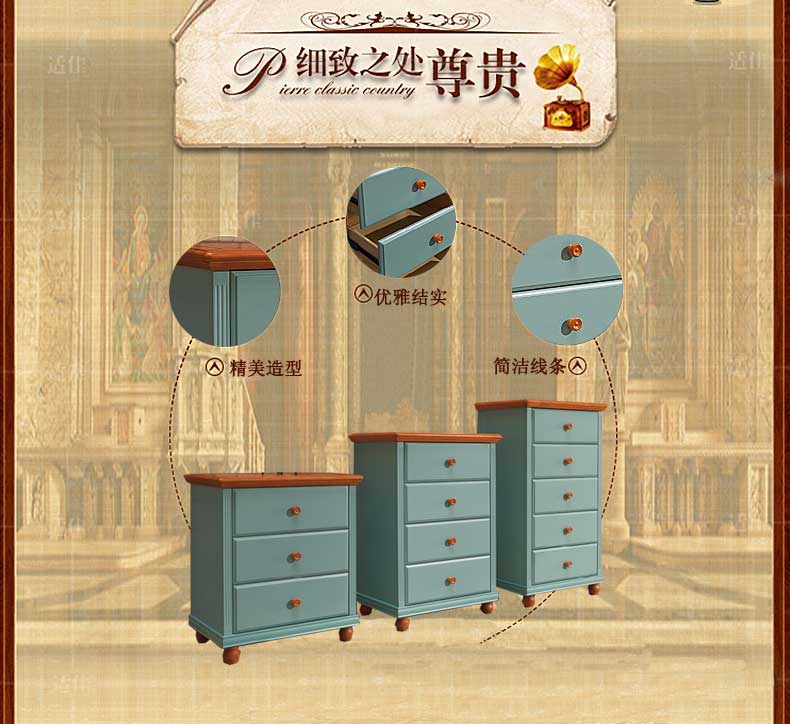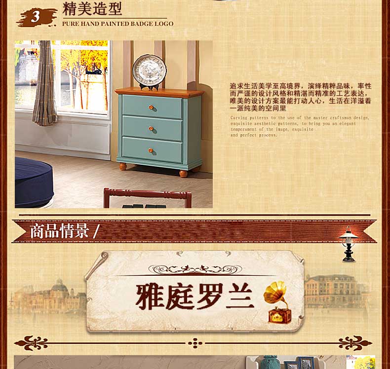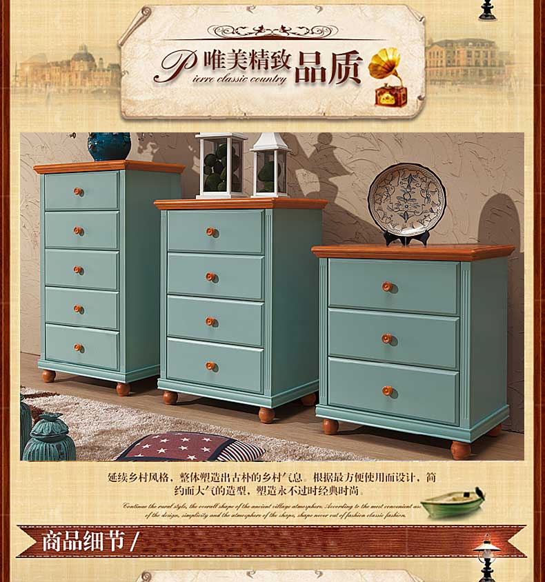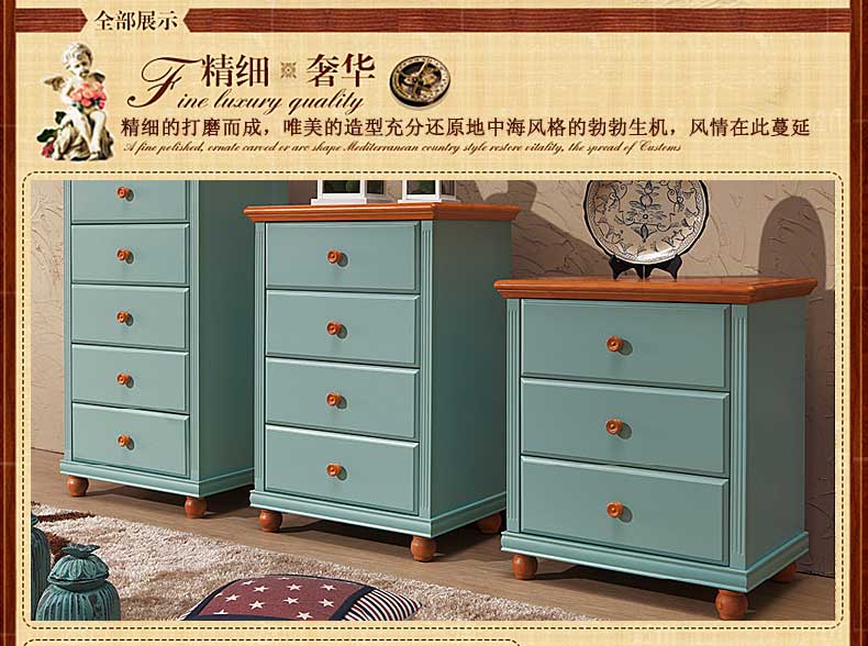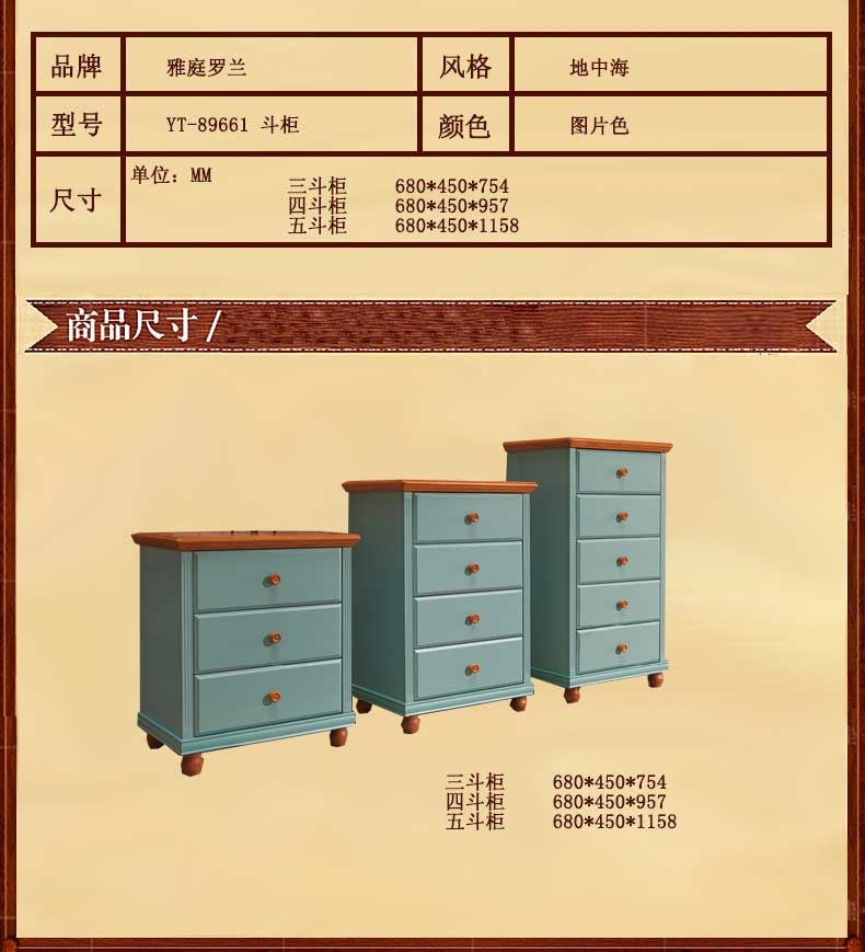 雅庭罗兰新款简约乡村储物柜地中海三斗四斗五斗橱YT-89661斗柜