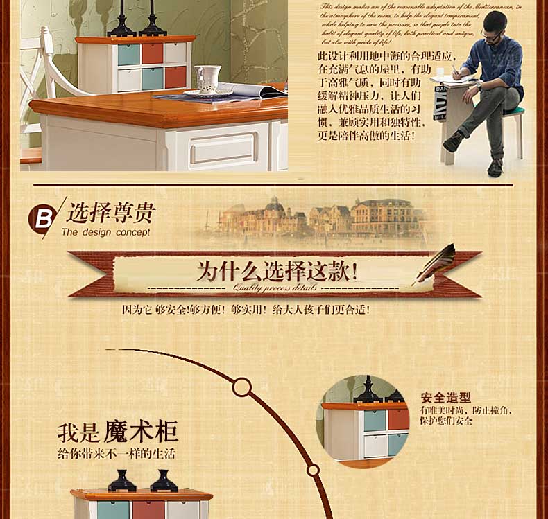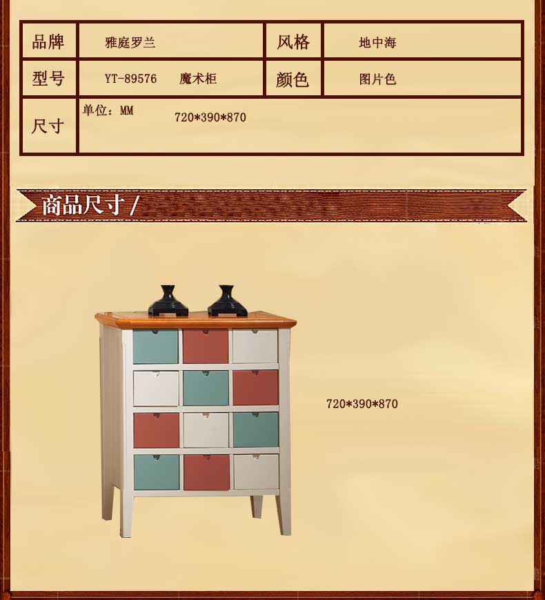 雅庭罗兰玄关柜地中海复古餐边柜斗柜简约储物柜YT-89576魔术柜