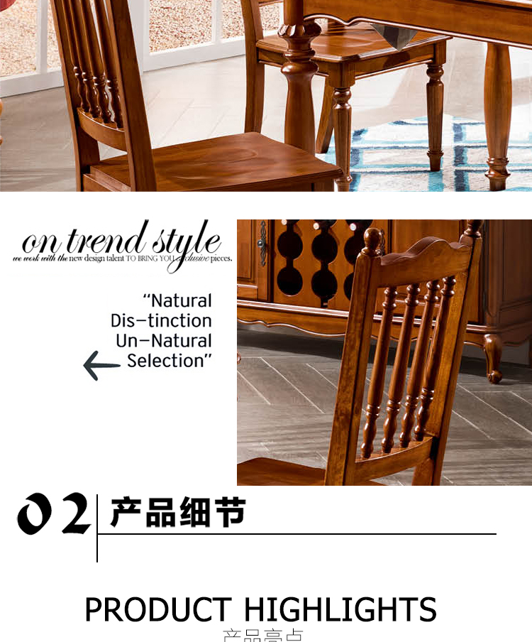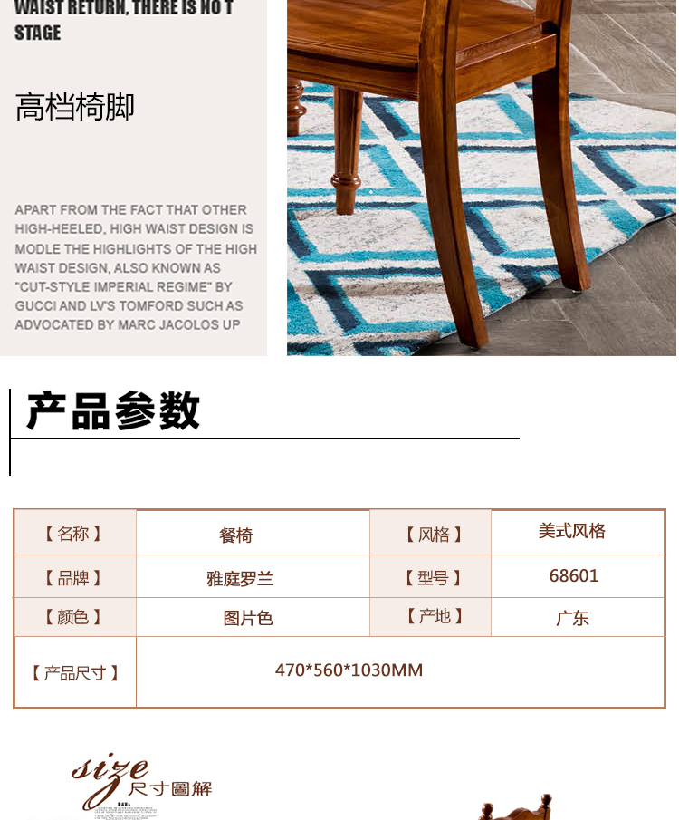 雅庭罗兰 纯实木餐椅 美式高档餐椅 靠背椅 书房椅子饭椅家具 68601