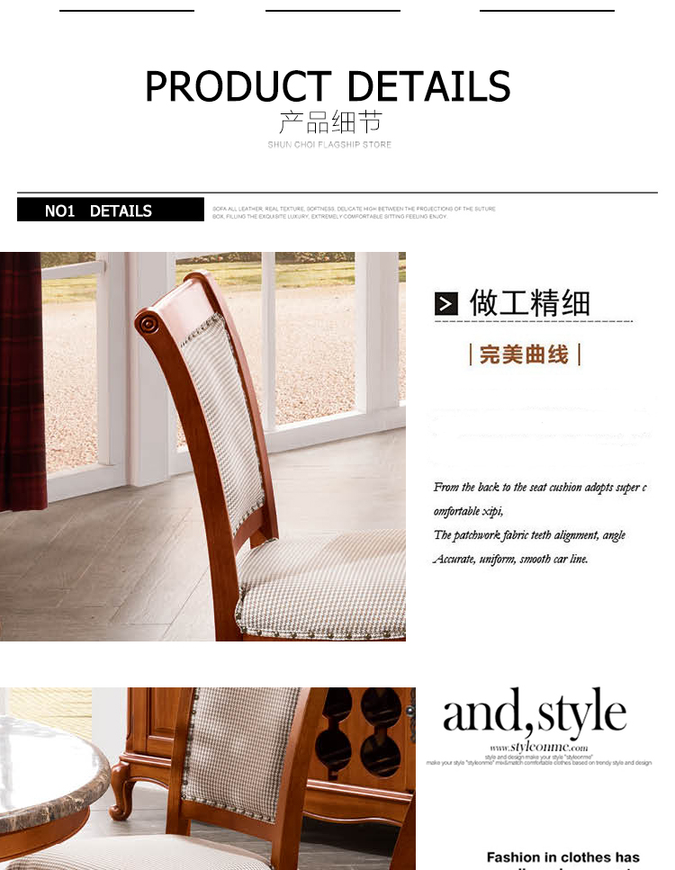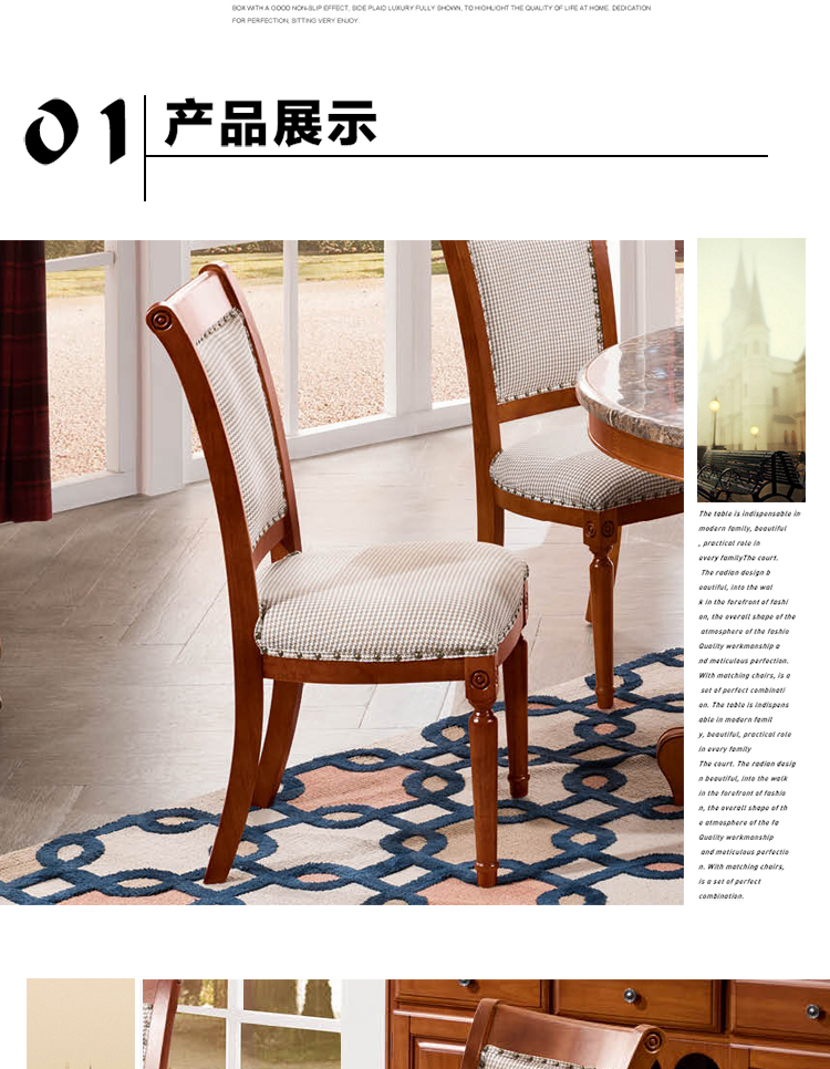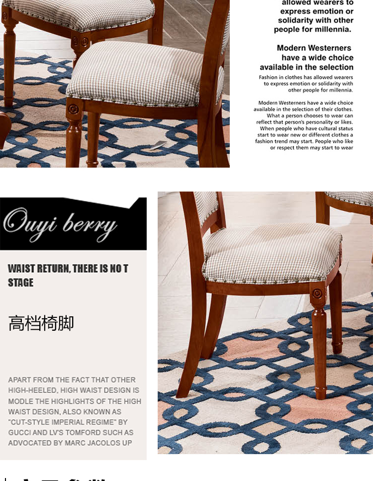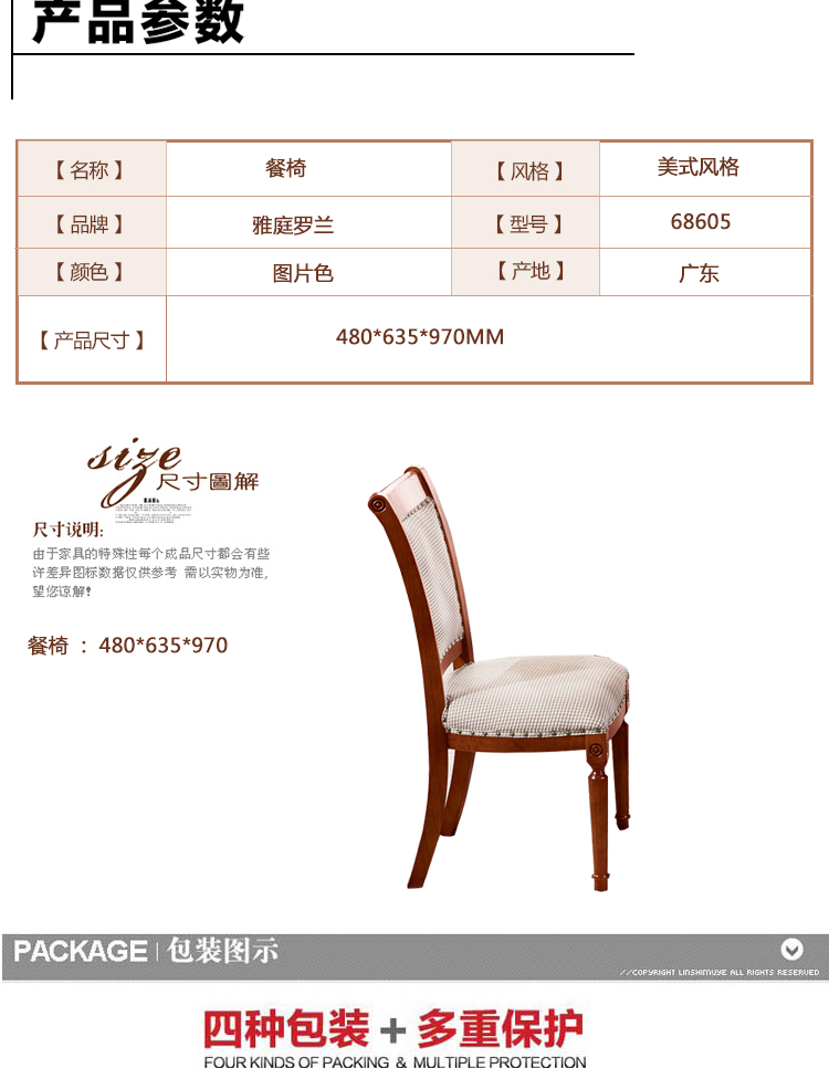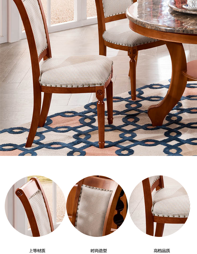 雅庭罗兰 美式餐椅 休闲椅餐厅酒店实木椅子复古做旧化妆凳 68605