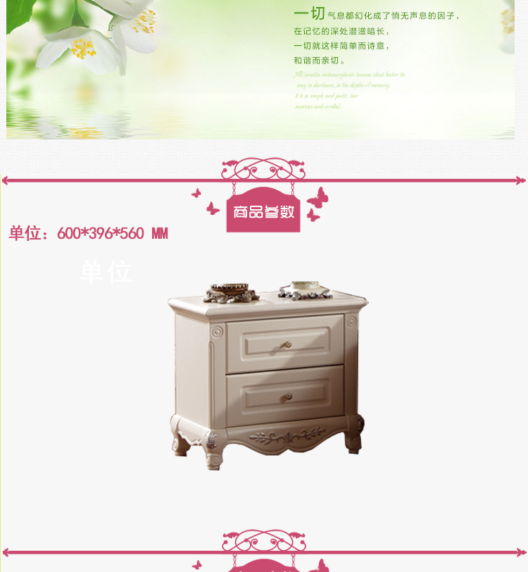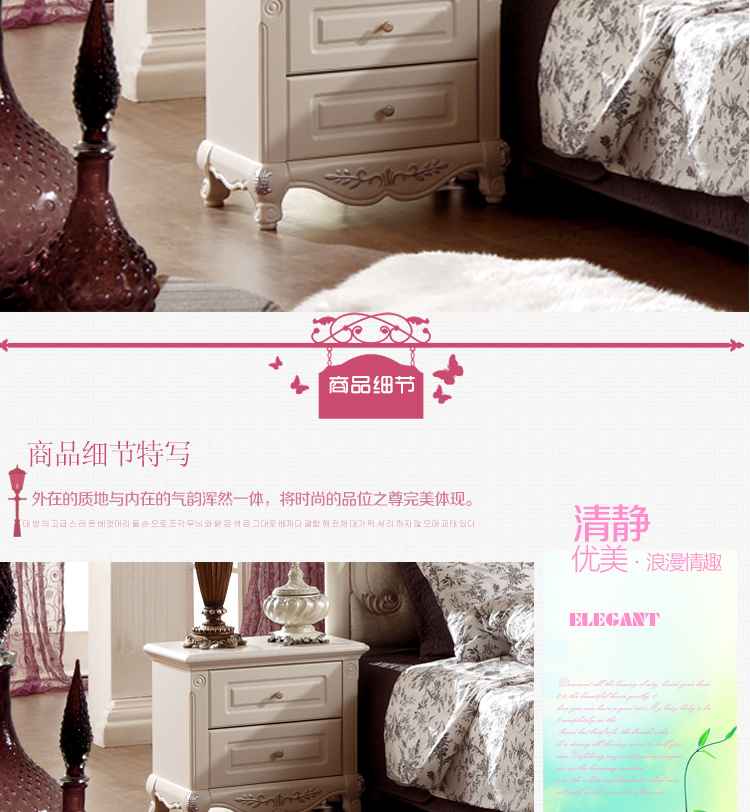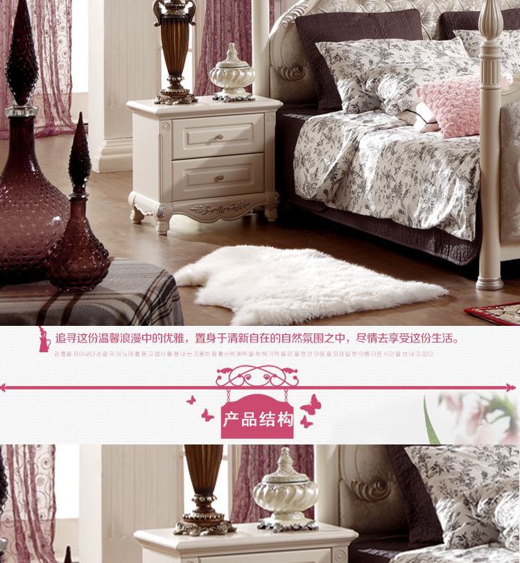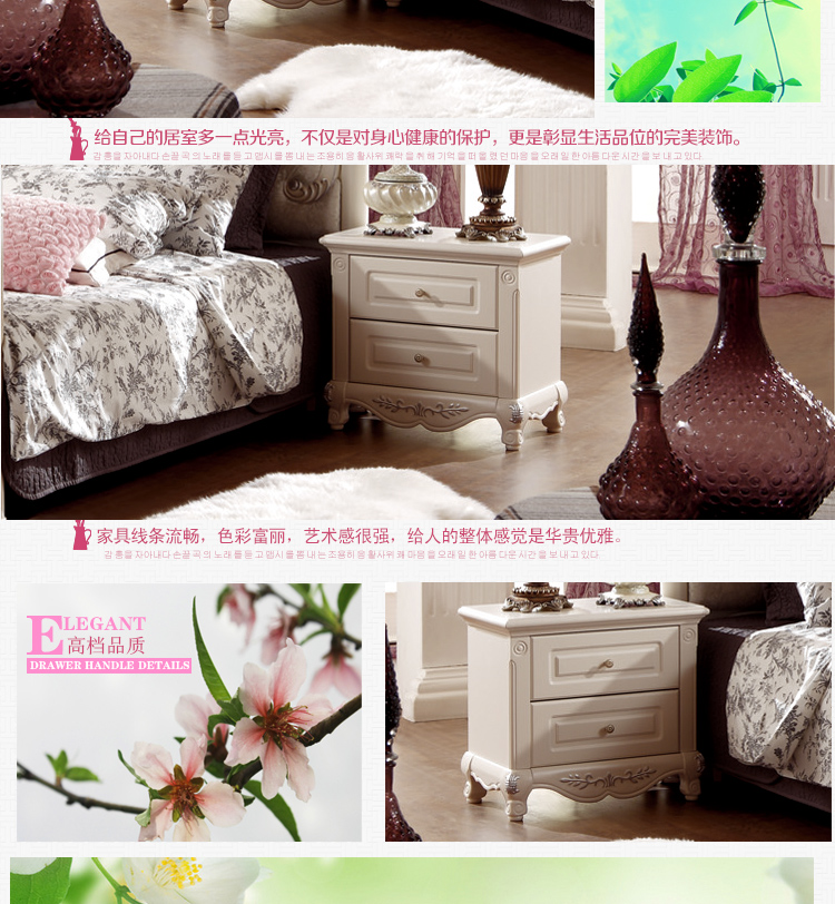 雅庭罗兰 白色烤漆实木床头柜奢华韩式珠光 雕花韩式床头柜 YT-9321