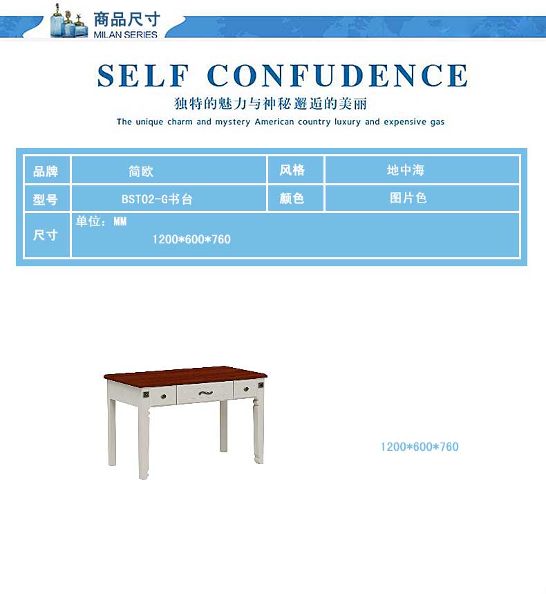 简欧地中海书桌简约写字台卧室电脑桌子家用学习桌BST02-G 书台